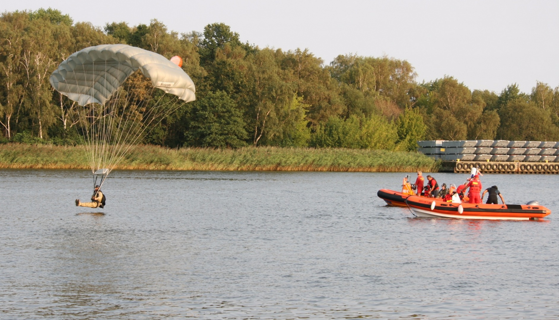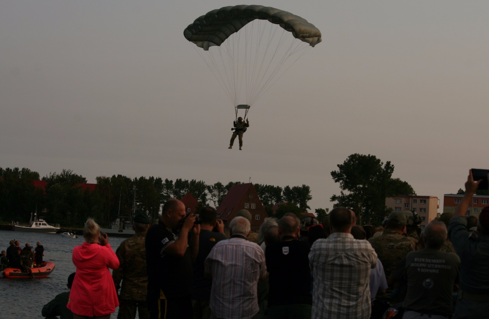Głównym punktem programu były jednak pokazy skoków spadochronowych do Dziwny, które zgromadziły tłumy wczasowiczów. 14 spadochroniarzy skakało z helikoptera z wysokości 1200 metrów. W uwagi na wiatr samolot wyrzucał komandosów ze znacznie dalszej odległości od miejsca pokazu, ale wszyscy dolecieli do celu, dając pokaz manewrowania spadochronem. Trzech wpadło do wody kilka metrów od wyznaczonego na rzece punktu.
