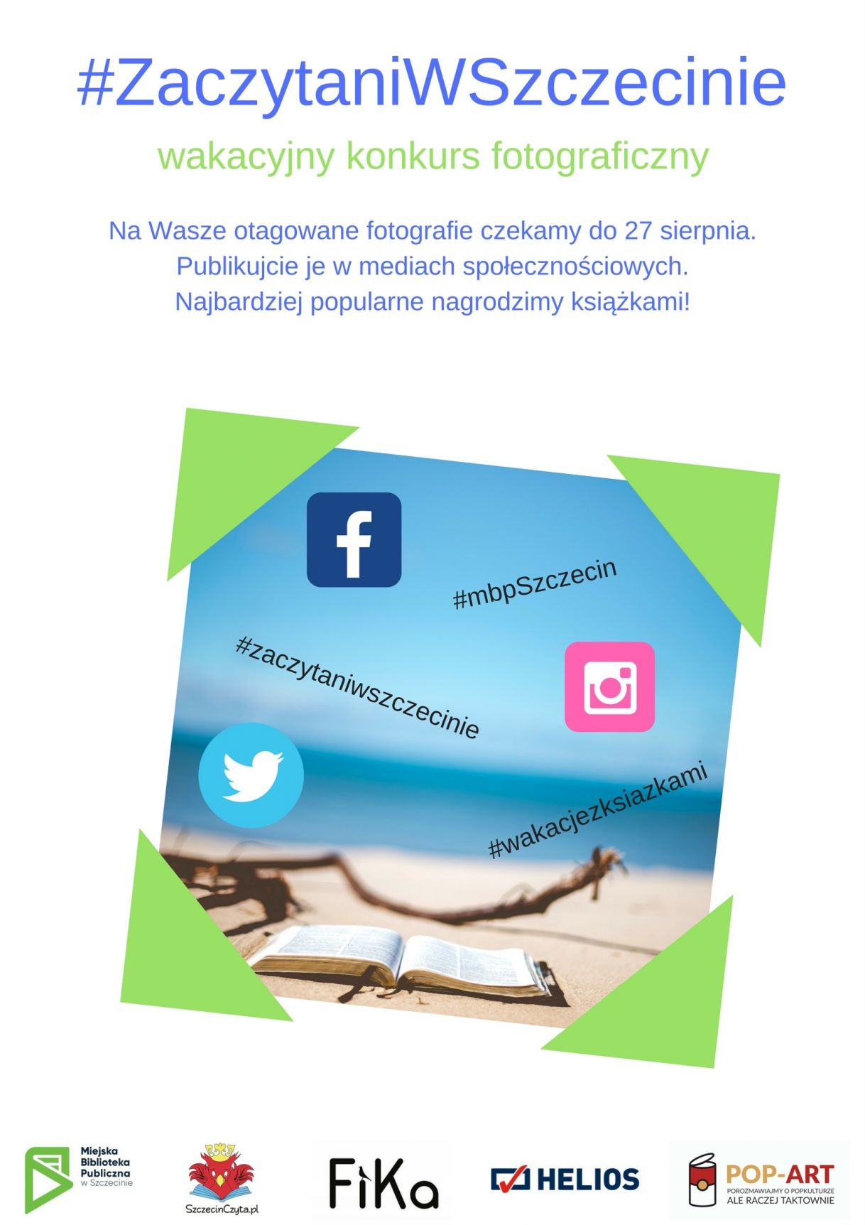 Do 27 sierpnia MBP czeka na prace w konkursie fotograficznym #zaczytaniwszczecinie. Jak zachęca MBP: "Jeśli nie wyobrażasz sobie spędzenia wakacji bez swojego najlepszego przyjaciela - książki, ten konkurs jest dla Ciebie. Przyjaciół nie zostawia się w domu, z nimi przeżywa się najlepsze przygody, zwłaszcza te wakacyjne. Pokaż, jak spędzacie razem czas! Zabierz książkę nad morze, w góry, pod namiot czy inne, nawet najbardziej fantastyczne miejsce i udokumentuj to fotografią. Zrób zdjęcie ilustrujące wakacje z książką, umieść w mediach społecznościowych (Facebook, Instagram, Twitter) i otaguj #zaczytaniwszczecinie #mbpSzczecin #wakacjezksiazkami. Zdjęcia, które w każdym tygodniu wakacji wzbudzą najwięcej pozytywnych reakcji (lajków, serduszek itd.)