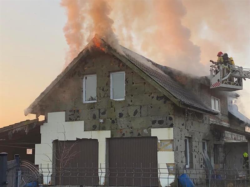 Ogień pojawił się na poddaszu jednorodzinnego budynku ok. godz. 7 rano. Natychmiast powiadomiono straż.