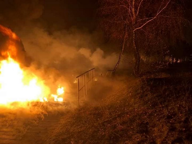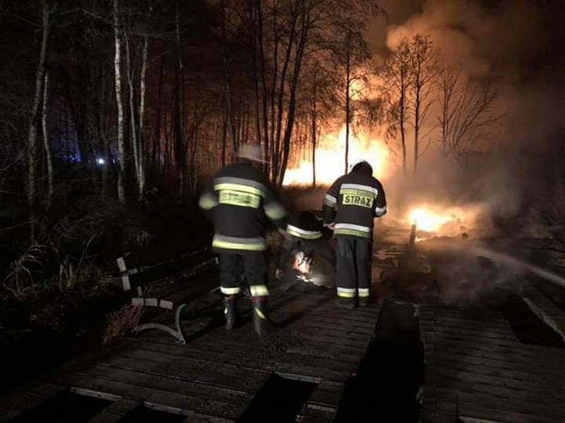 O godzinie 1.48 jednostka Ochotniczej Straży Pożarnej w Trzebieży została skierowana do pożaru na plaży. Okazało się, że płoną pomosty promenady na prawie całej długości ulicy Spacerowej.