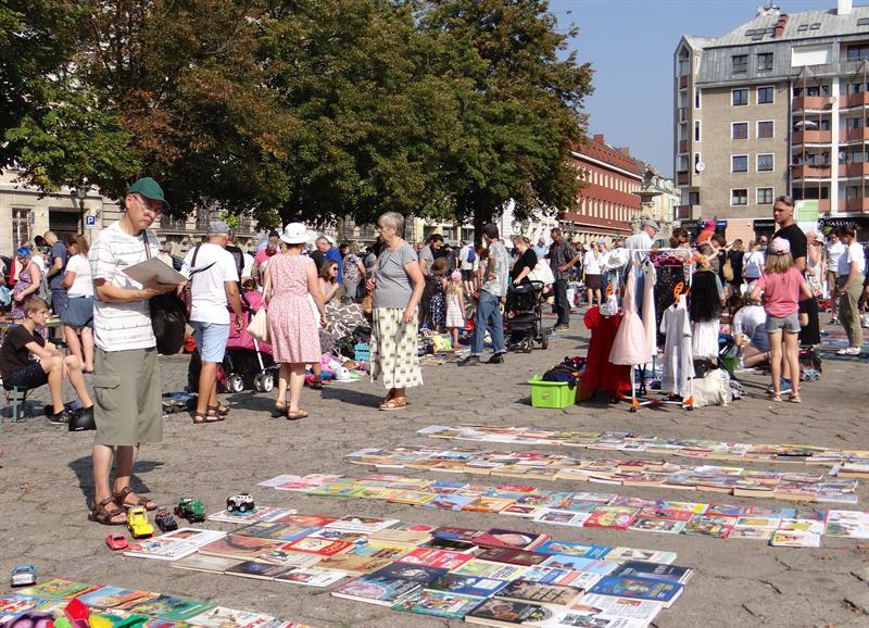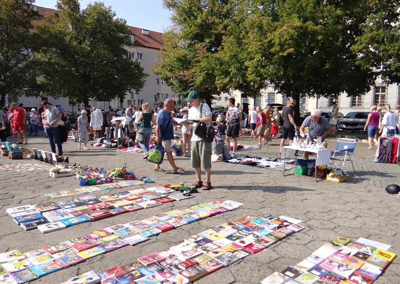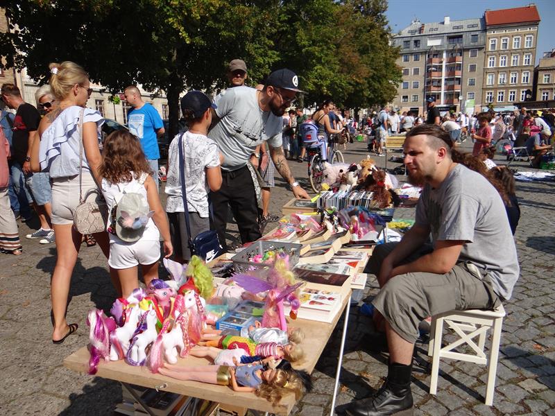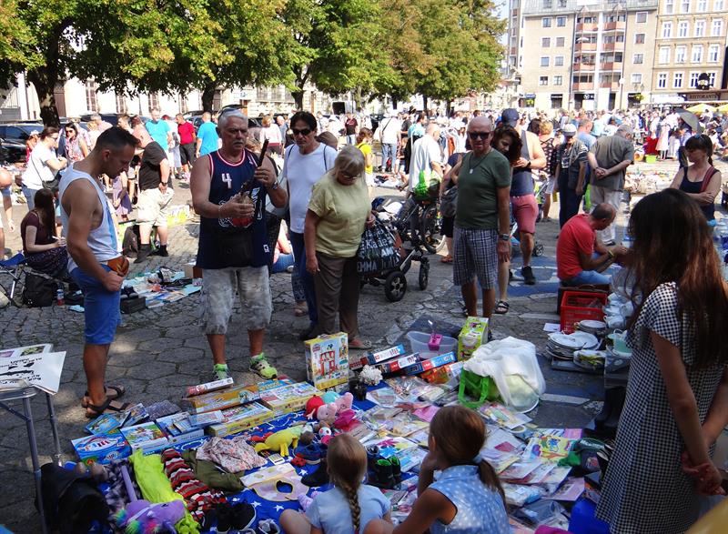 Jest w czym wybierać, przebierać, upolować skarb z drugiej ręki, a jego cenę zbić, czyli korzystnie utargować. Na kramach jest mnóstwo porcelany, szkieł, kryształów, antyków, książek. Ale też armatki wodne, tańczące kwiaty i nie tylko dziecięce rowery. Nie brakuje biżuterii, winyli, parasolek, słomianych kapeluszy, stylowych kreacji i innych kolorowych łaszków. Wszystko to - dosłownie - na każdą porę roku i portfel. Trzeba też wspomnieć o morzu zabawek, z którego da się wyłowić zarówno klocki i pluszowe misie, elektryczne kolejki, mniej i bardziej zaawansowane gry komputerowe oraz konsole, ale też repliki wojennych hełmów (od rzymskich po współczesne), broni białej i hukowych granatów. A kogo fantazja poniesie, to... nawet jednorożca i samochód.