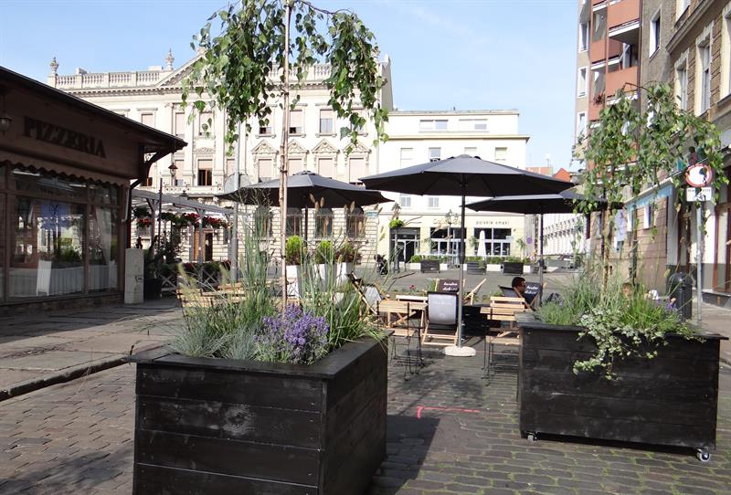 Górny taras Starego Miasta zmienia się od dwóch tygodni, zgodnie z sugestią szczecinian. Został zamknięty parking w centralnej części pl. Orła Białego, uspokojony ruch wokół niego – wprowadzono strefę 30 km/h, o czym nie powinni zapominać kierowcy nadal „na pamięć” pędzący ul. Grodzką. Miejsca niedawnych drogowych zapór – uniemożliwiających wjazd od częściowo zamkniętej ul. Koński Kierat, ul. Staromłyńskiej i przejazd przez Orła Białego – zajęły donice z zielenią. Zbudowane i obsadzone przez społeczników zaangażowanych w projekt pn. „Nowe życie placu”.