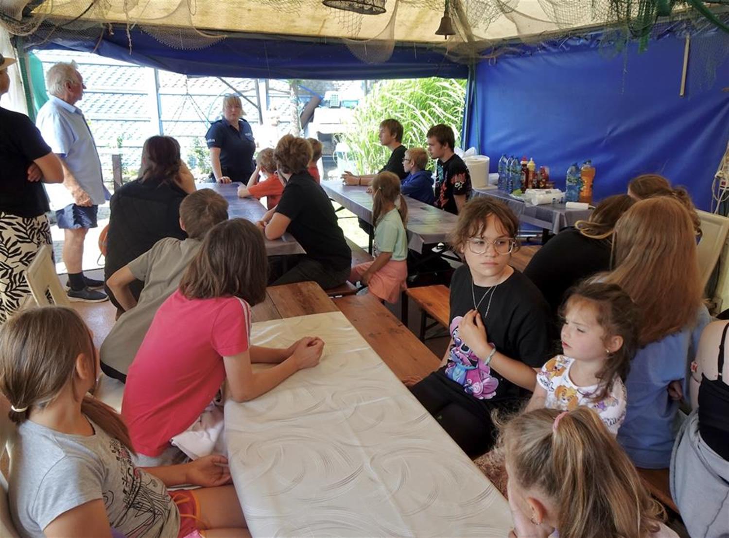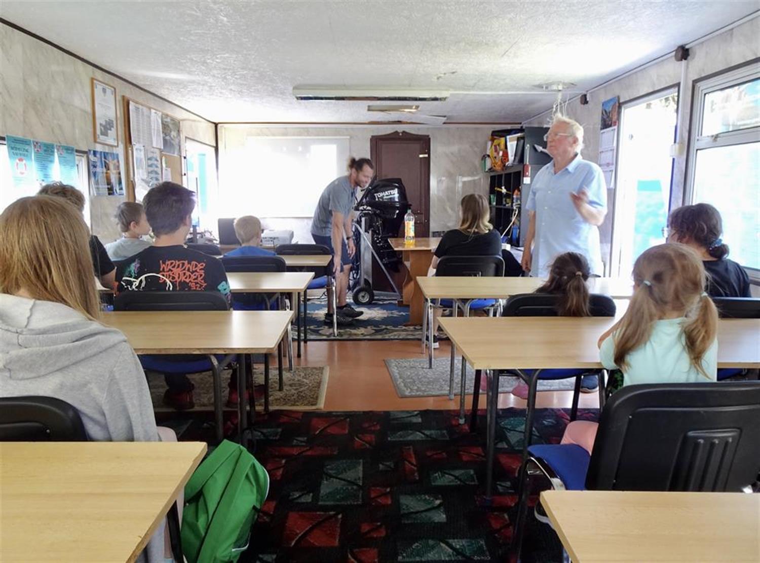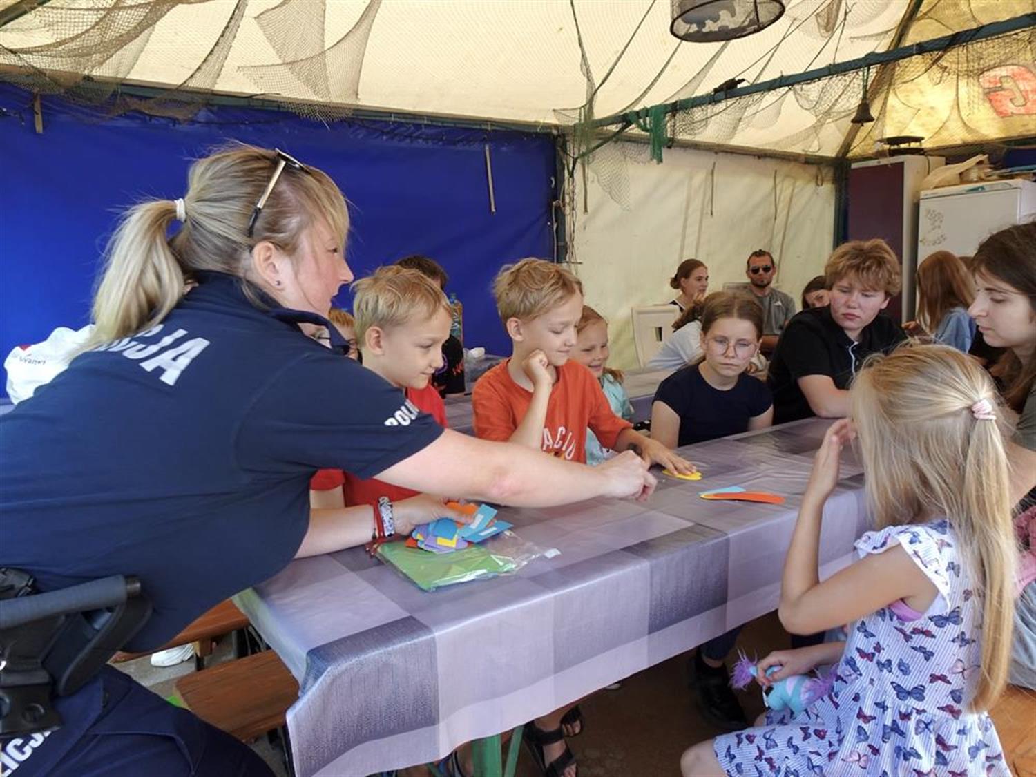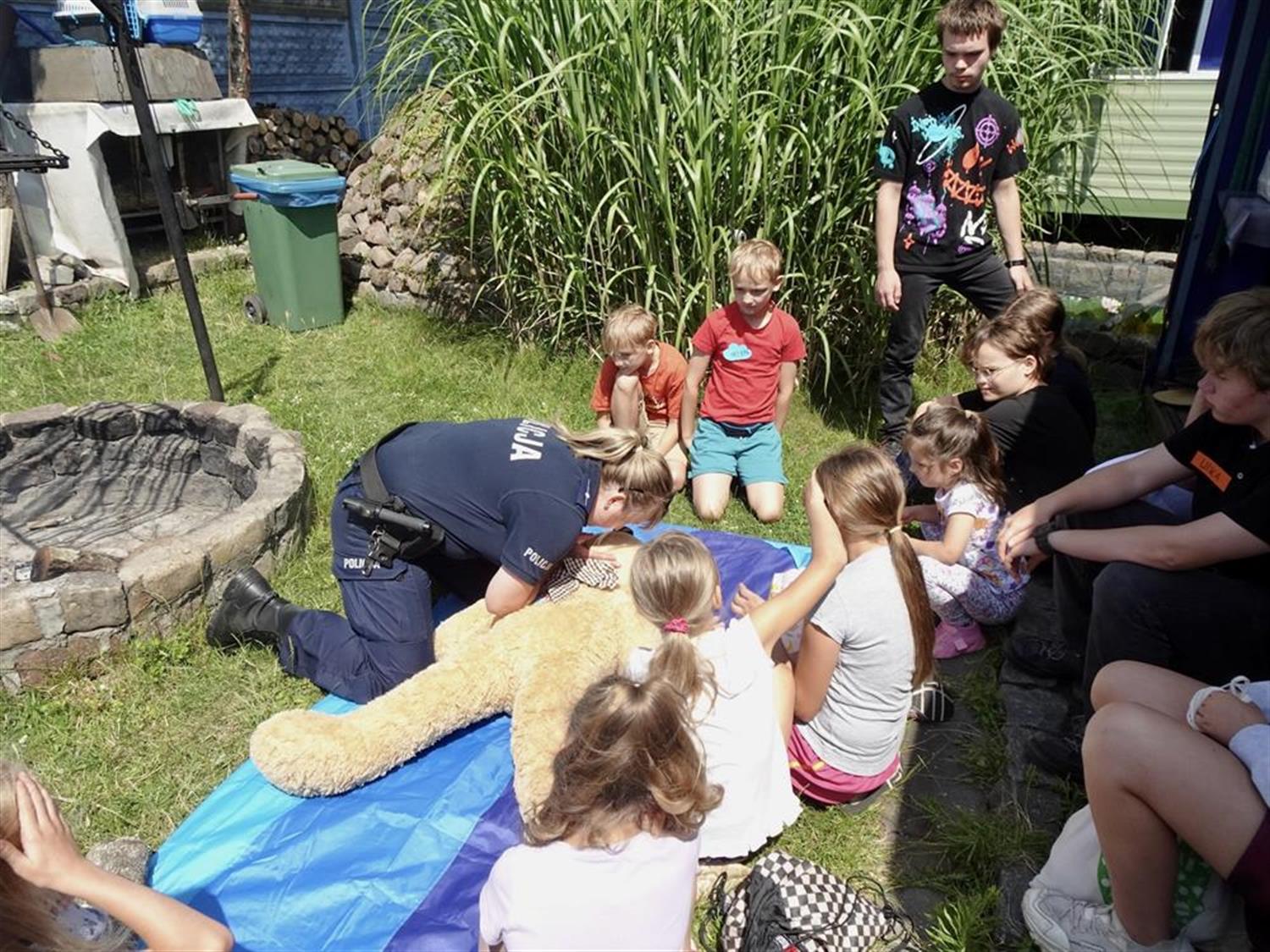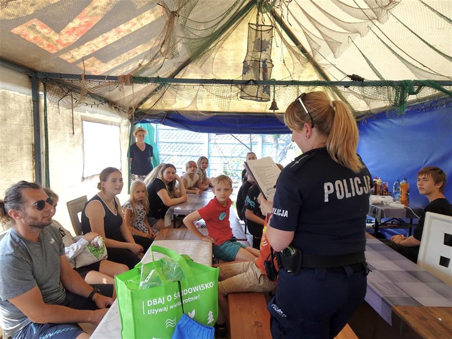 Funkcjonariusze Komisariatu Wodnego Policji w Szczecinie, aspiranci Agnieszka Mróz i Rafał Nicki przypłynęli na spotkanie łodzią policyjną. Przygotowali dla dzieci szereg konkursów. Policjantka omówiła zasady bezpieczeństwa nad wodą, a także zademonstrowała na dużym misiu, jak udzielać pierwszej pomocy przedmedycznej.