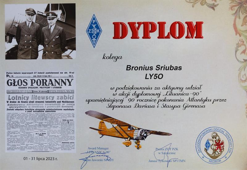 Zachodniopomorscy krótkofalowcy obchodzą 90. rocznicę rozbicia się samolotu „Lituanica”. Lecieli nim dwaj litewscy lotnicy Stasys Girėnas oraz Stepanas Darius.