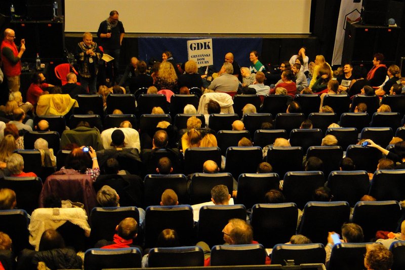 Zanim Elżbieta Dzikowska weszła do sali widowiskowo-kinowej Gryfińskiego Domu Kultury, w sobotę (2 marca) festiwalowa publiczność po brzegi wypełniła widownię; poza fotelowymi miejscami, sympatycy znanej podróżniczki sadowili się na materacach, schodach, wolnych skrawkach podłogi... Ale i tak nie dla wszystkich chętnych wystarczyło miejsca; część musiała zadowolić się pozostaniem na poboczu, skąd co prawda prelegentki nie było widać, ale można było przysłuchiwać się opowieściom snutym ze swadą przez E. Dzikowską.