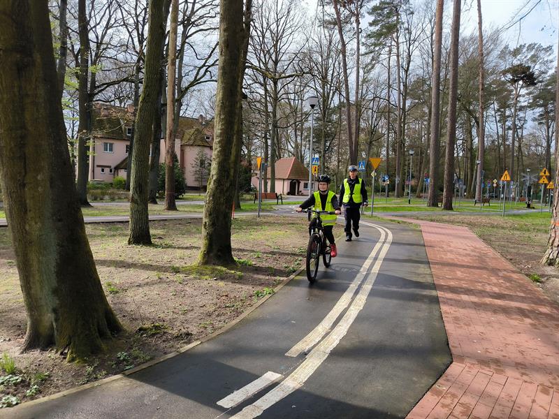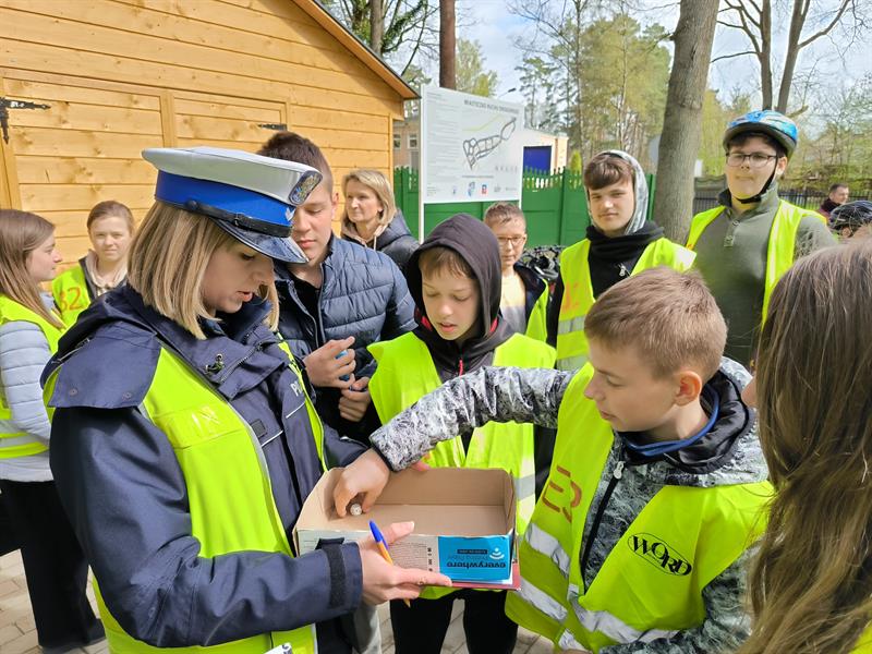 – Sprawdzamy ich znajomość przepisów ruchu drogowego podczas testu z wiedzy teoretycznej, przystępują też do testu z ratownictwa medycznego, w którym muszą się wykazać umiejętnościami udzielania pierwszej pomocy – wymienia mł. asp. Anna Kaźmierczak z Komendy Powiatowej Policji w Policach. – Później mają test praktyczny, czyli sprawdzamy, czy odnajdą się w takim miasteczku w ruchu drogowym, czy zwracają uwagę na znaki i oznakowanie poziome. Na koniec mają jeszcze wykazać, że dadzą radę z rowerem na torze przeszkód, np. na równoważni lub w slalomie.