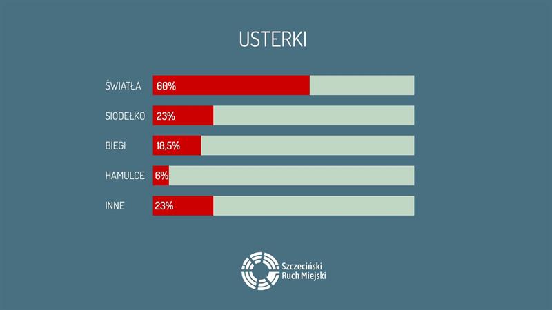 Podczas audytu znaleziono jeszcze 15 usterek, które znacząco pogarszają komfort i bezpieczeństwo jazdy. W czterech rowerach nie działał dzwonek lub nie było go wcale. Dwa jednoślady miały scentrowane przednie koło. W siedmiu rowerach wystąpił problem z pedałami – „skrzypiały, były luźne lub przekrzywione”.