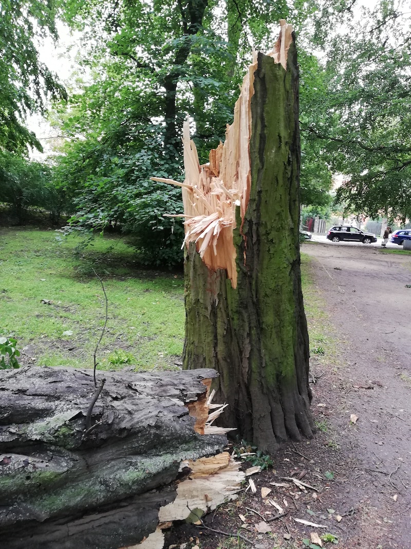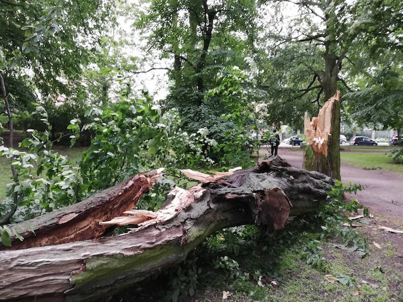 Na interwencję służb porządkowych czeka natomiast połamane drzewo w parku Żeromskiego.