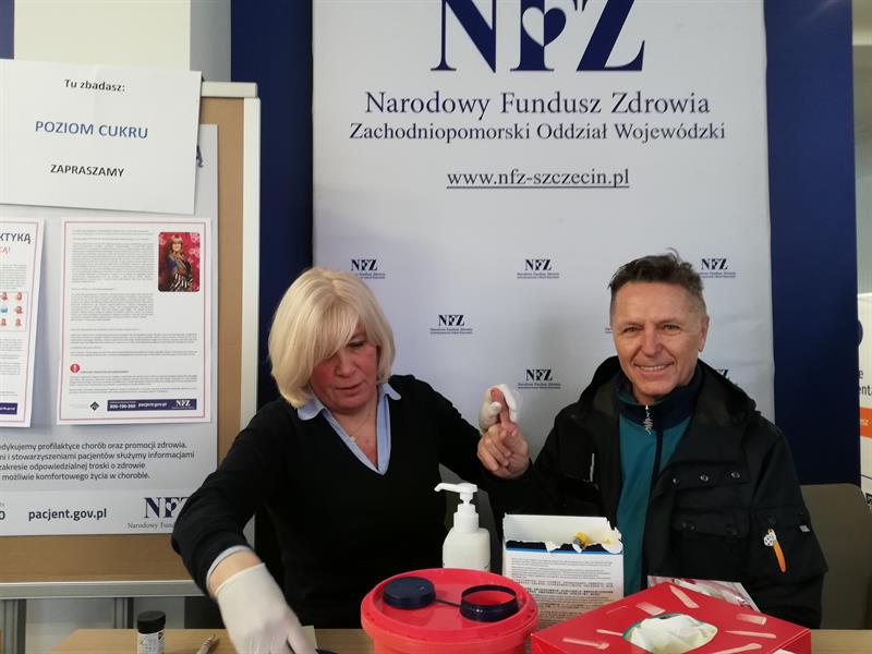 Gośćmi Zachodniopomorskiego Oddziału NFZ byli wczoraj Dorota Herman, specjalista pielęgniarstwa diabetologicznego, Eugeniusz Tworek, prezes Zachodniopomorskiego Oddziału Polskiego Stowarzyszenia Diabetyków oraz przedstawiciele Wojewódzkiej Stacji Sanitarno-Epidemiologicznej. Na chętnych czekały stanowiska z badaniami profilaktycznymi.