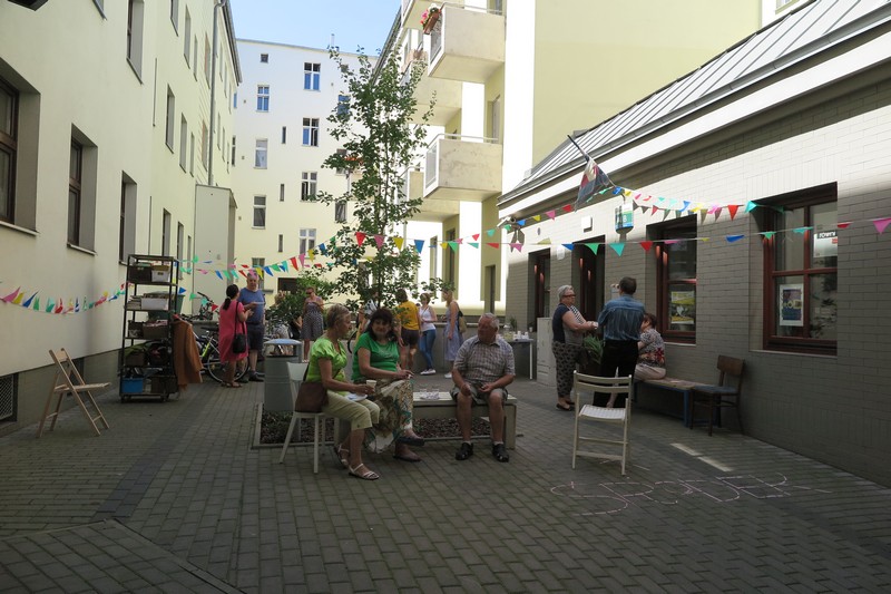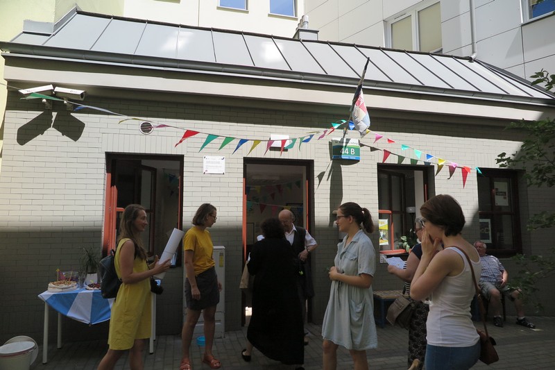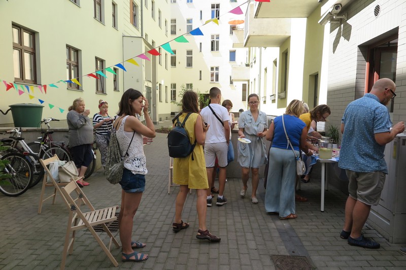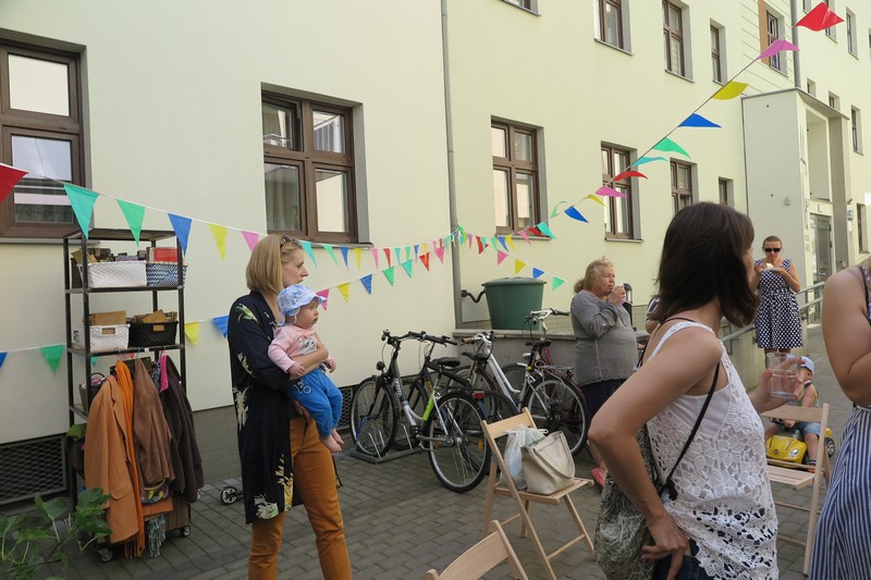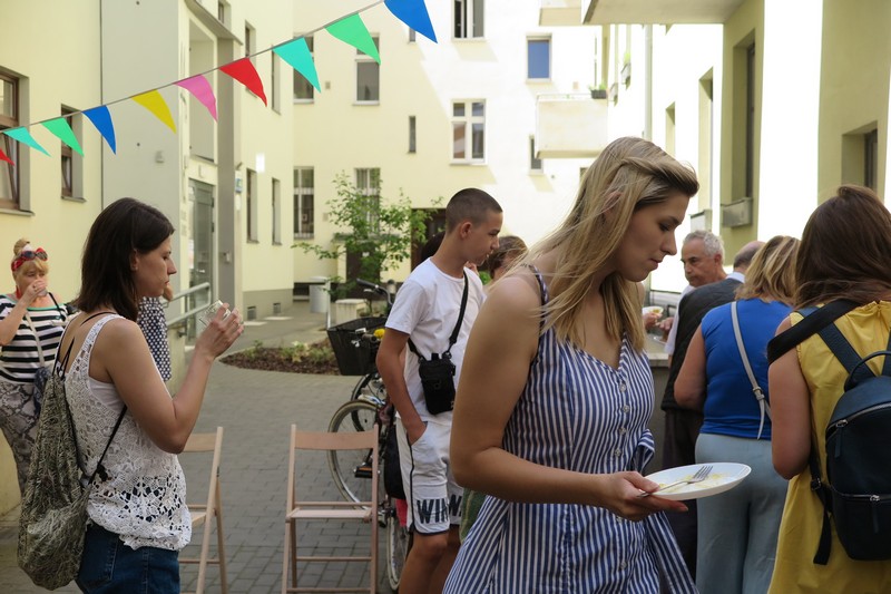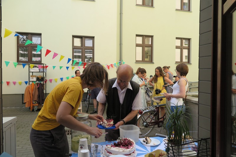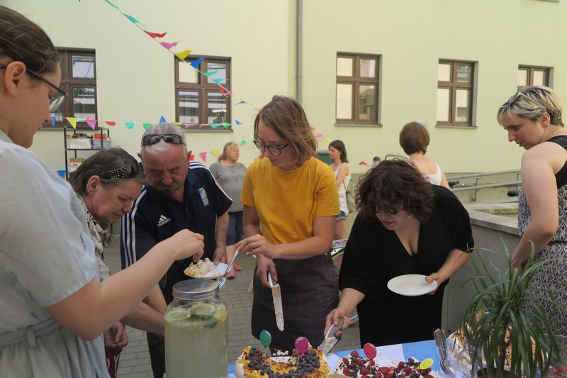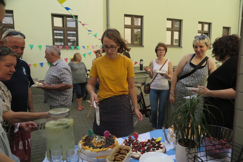 Na sobotnich urodzinach nie zabrakło stałych uczestników organizowanych przez ŚRODEK spotkań z ciekawymi ludźmi, Święta Śródmieścia, spacerów, projekcji kina podwórkowego, rozmaitych zajęć dla starszych i dzieci. Pojawiły się także osoby, które trafiły tu po raz pierwszy, przywiedzione zaproszeniami rozwieszonymi na okolicznych bramach czy strzałkami narysowanymi kredą na chodnikach. Wszyscy odśpiewali społecznikom z Oswajania Sztuki "Sto lat!". Była też okazja do powspominania rozmaitych wydarzeń w ŚRODKU przy lemoniadzie i pysznych tortach od firmy z sąsiedztwa - "Szczecińska Beza". Spotkanie wsparła także Rada Osiedla Śródmieście Zachód.