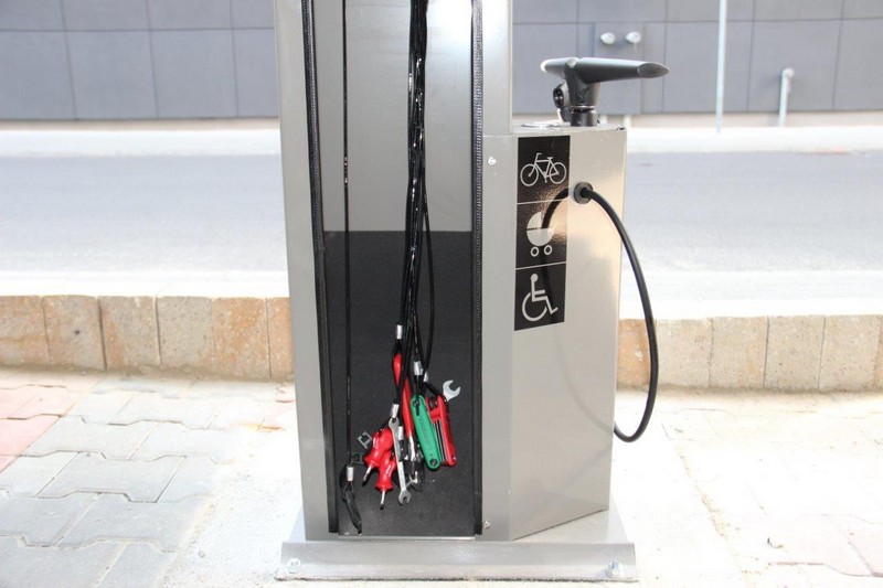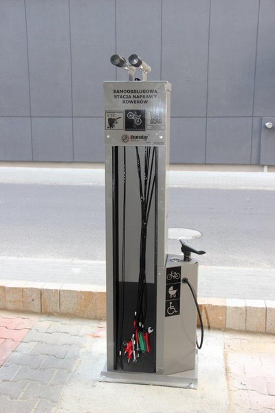 Rowerzyści mogą korzystać ze stacji obsługi rowerów na terenie Centrum Handlowo-Rozrywkowego „Galaxy” w Szczecinie. Do niedawna stała ona przed budynkiem od strony al. Wyzwolenia, teraz została przeniesiona na parking. Po pierwsze, jest wygodniej, bo ma zadaszenie, a po drugie, to miejsce chronione przed wandalami. Można tu sprawdzić ciśnienie w oponach i w razie potrzeby dopompować koło, ale również, dzięki kompletowi narzędzi, dokonać podstawowych napraw roweru. Stacja została ulokowana na chodniku przy wjeździe na parking wielopoziomowy Centrum, od ul. Malczewskiego. Jest dostępna całą dobę.