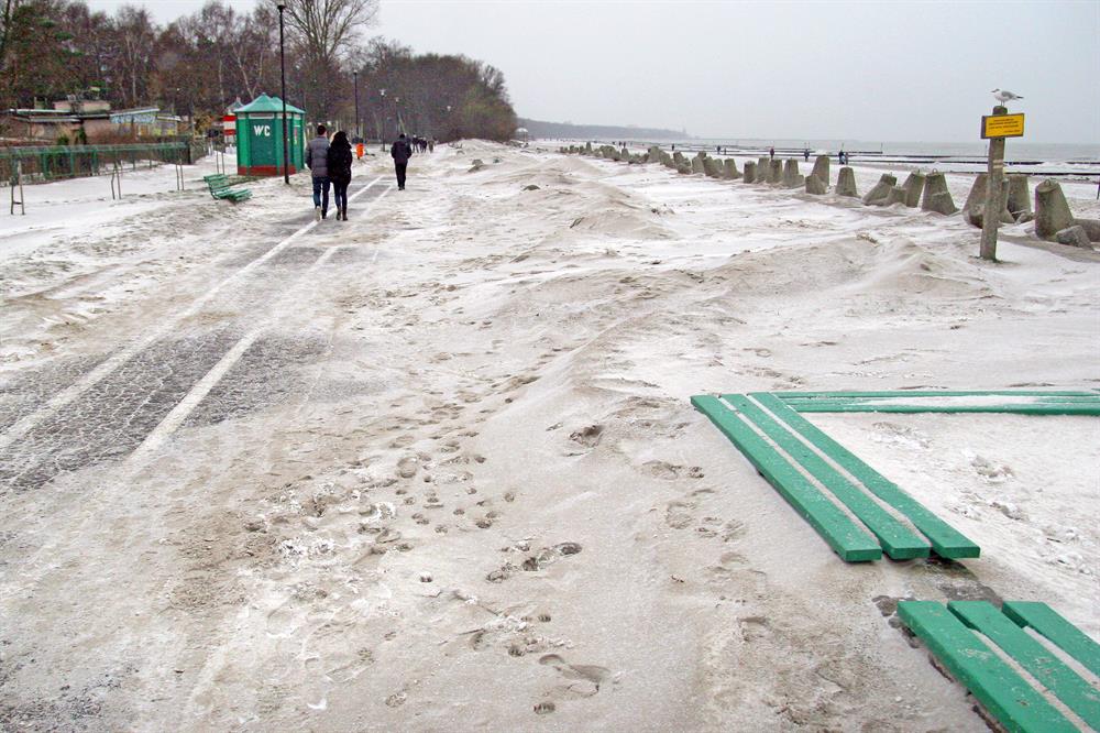 Jeszcze kilka lat temu Kołobrzeg narzekał na zbyt wąskie plaże. Wielomilionowa inwestycja Urzędu Morskiego w Słupsku, polegająca na wbiciu wzdłuż brzegu drewnianych ostróg i usypaniu podwodnych kamiennych raf, okazała się skutecznym rozwiązaniem problemu. Plaża nie tylko poszerzyła się, ale i podwyższyła. Pojawiła się jednak pewna uciążliwość. Przy północno-zachodnich sztormach piach niesiony wiatrem odkłada się na promenadzie. ©℗