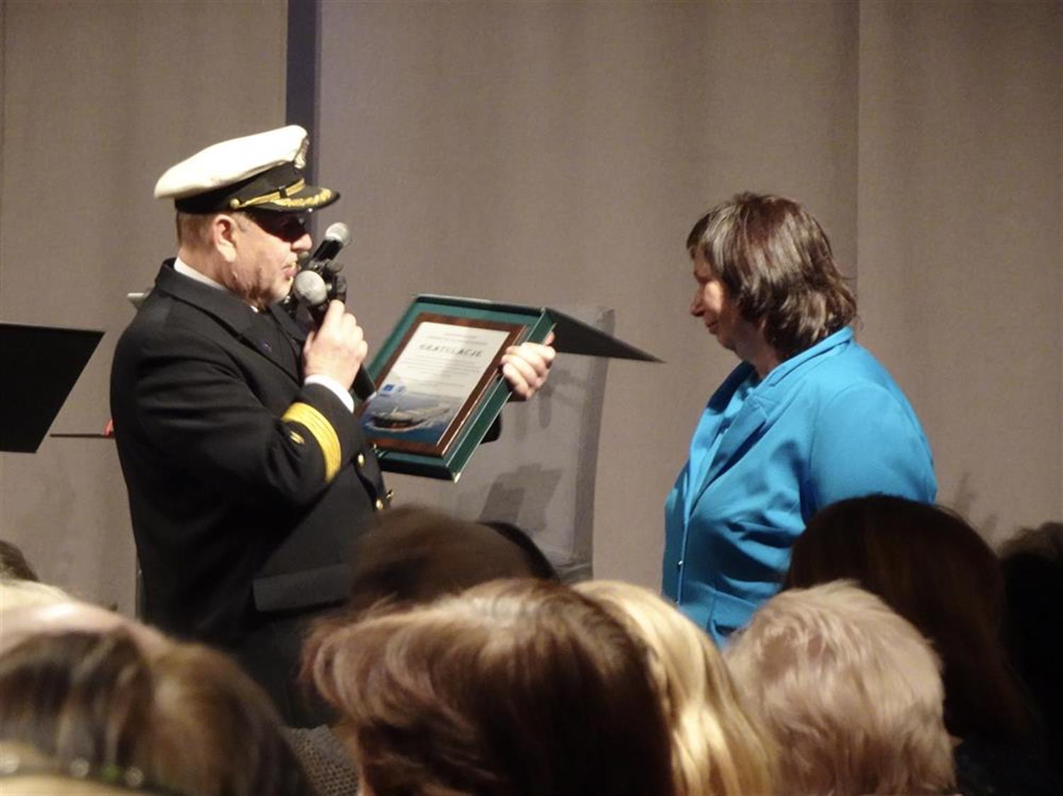 Podczas uroczystości na Skwerze Kapitanów prezes CSL Laura Hołowacz i kpt. ż.w. Lech Katkowski otrzymali upominki od zaprzyjaźnionego górnika – Janusza Zdzisława Kaczmarskiego, który jest częstym gościem tutejszych wydarzeń.
