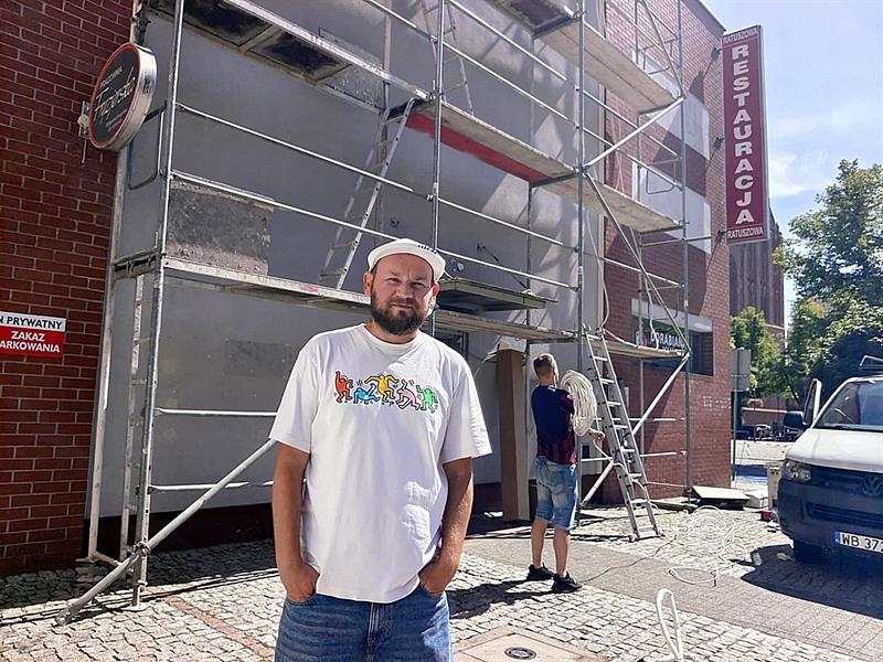 – Prace nad muralem potrwają ok. 4 dni – dodaje Maciej „Kreda” Jurkiewicz. – Twarz będzie złożona z mozaik, które artysta tworzył. Najbardziej ekscytujące jest robienie szkicu, ale wypełnienie tez sprawie mi wiele przyjemności, bo można się pobawić kolorem.