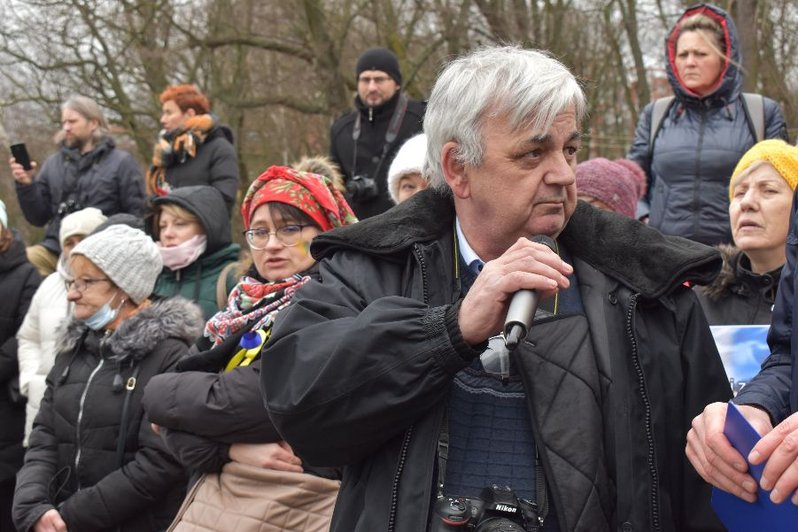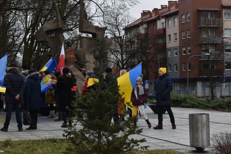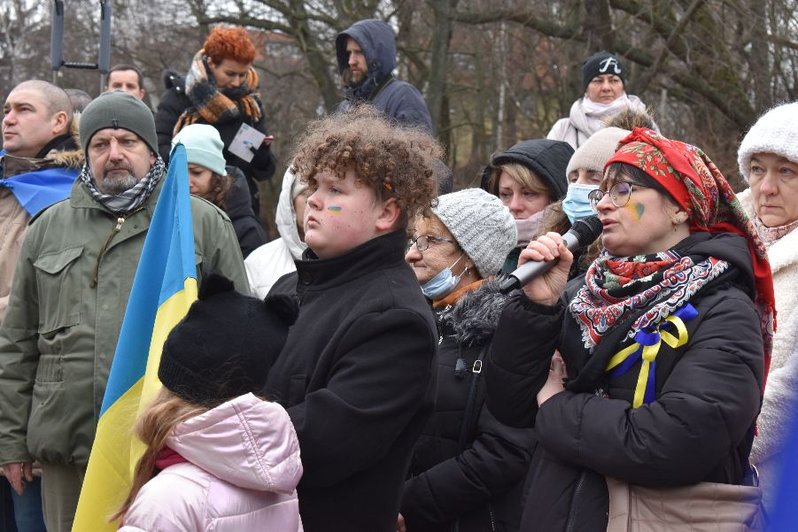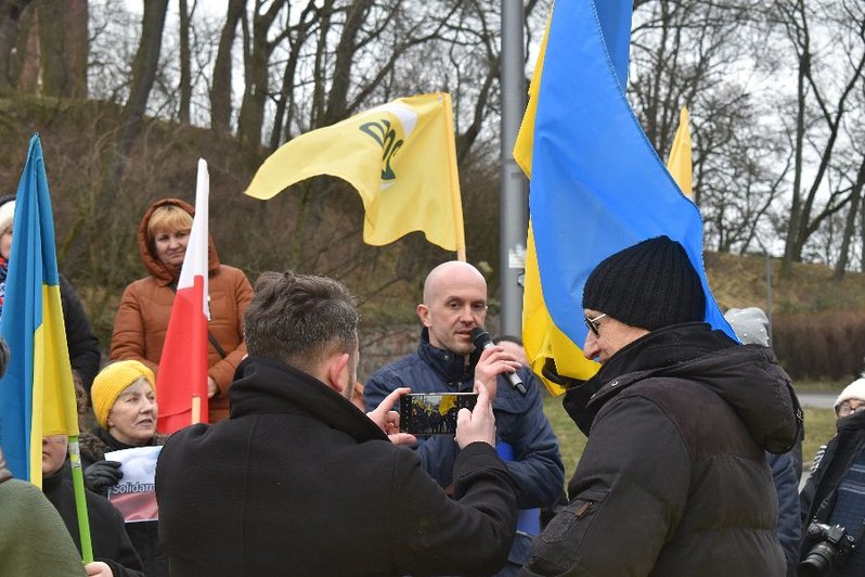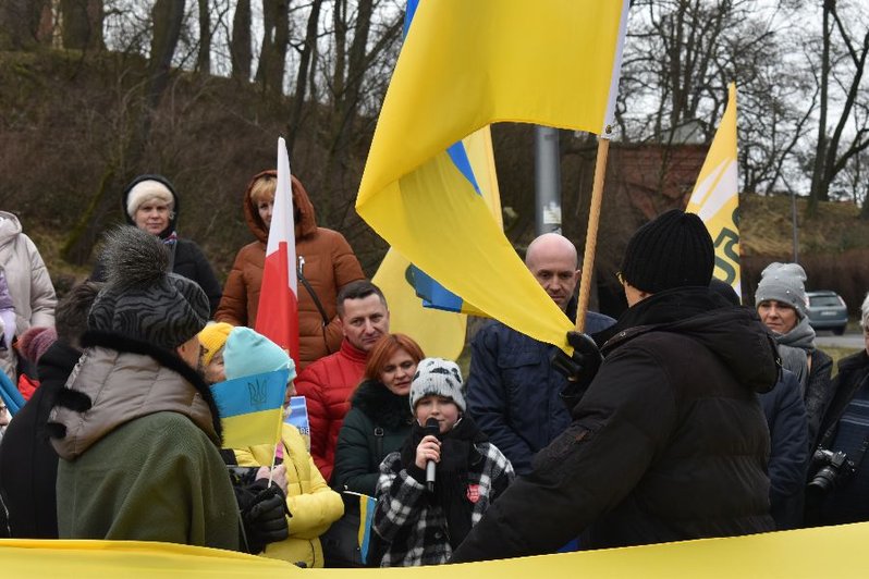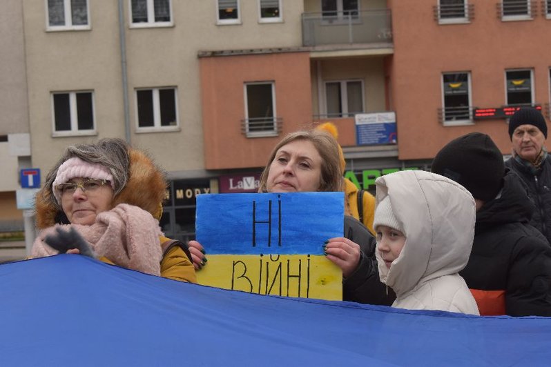 - Nie chcemy, by przez ambicję jednego polityka ginęli ludzie - mówili uczestnicy wiecu. - Wspierając Ukrainę wspieramy cały świat. Pamiętajmy, że Ukraina broni nie tylko siebie. Jeśli będzie napaść na Ukrainę, będzie też napaść na Polskę.