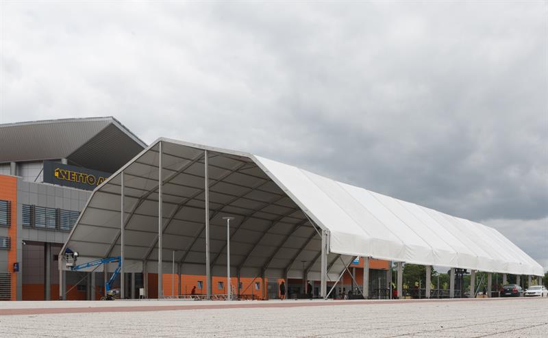 Miasto rozważało różne lokalizacje strefy, m.in. Łasztownię, ale ze względów komunikacyjnych i bezpieczeństwa, zdecydowano się wykorzystać teren przy ul. Szafera. Przed Netto Areną powstanie całe sportowe miasteczko. Jego głównym elementem będzie namiot o powierzchni 1000 mkw., w którym zamontowany będzie telebim, ustawione ławy i punkty gastronomiczne. Z uwagi na wymogi bezpieczeństwa wewnątrz namiotu jednorazowo będzie mogło przebywać maksymalnie tysiąc osób. Ilość osób będzie stale monitorowana.