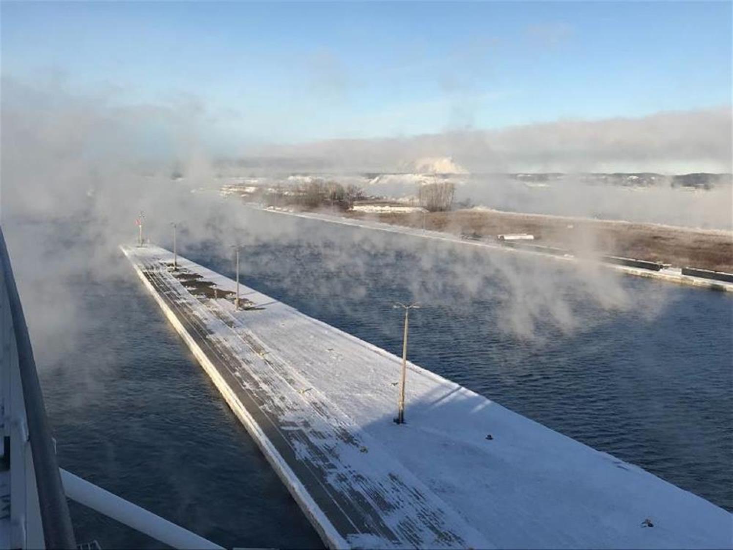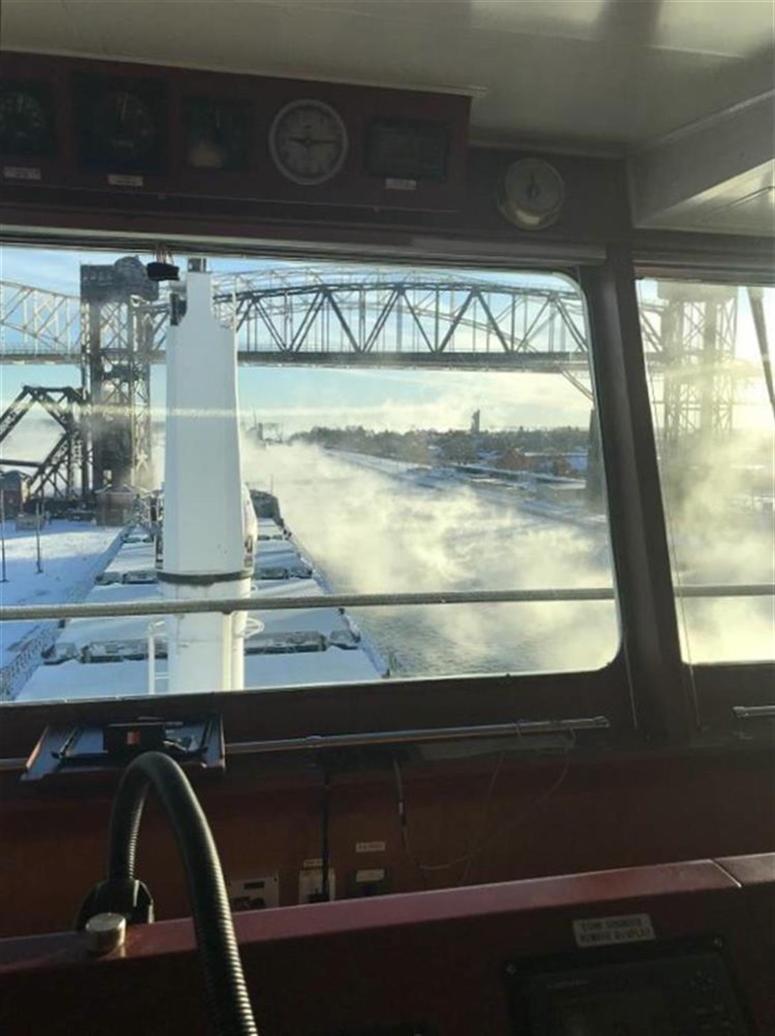 Kapitan Jacek Malinowski, dowodzący "Drawskiem", meldował, że Jezioro Górne, reda i rzeka są wolne od lodu, a tylko niewielkie jego ilości tworzą się w basenach przy śluzie. Na rzece St. Marys nawigacja dopuszczalna jest tylko za dnia (brak niektórych bojek), występuje ograniczona widzialność w czasie opadów śniegu oraz podczas intensywnego parowania wody. Przy niekorzystnych kursach może też wystąpić szybko narastające oblodzenie. (ek)