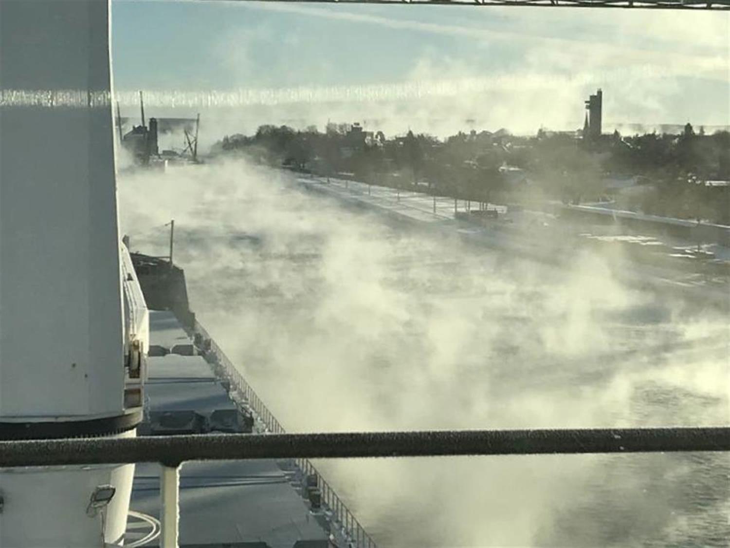Należący do Polskiej Żeglugi Morskiej masowiec "Drawsko" natrafił na ciekawe zjawisko na szlaku wodnym Wielkich Jezior Amerykańskich. W rejonie śluzy Sault St. Marie, woda z rzeki St. Marys, łączącej jeziora Górne i Huron, parowała tak, jakby się gotowała.