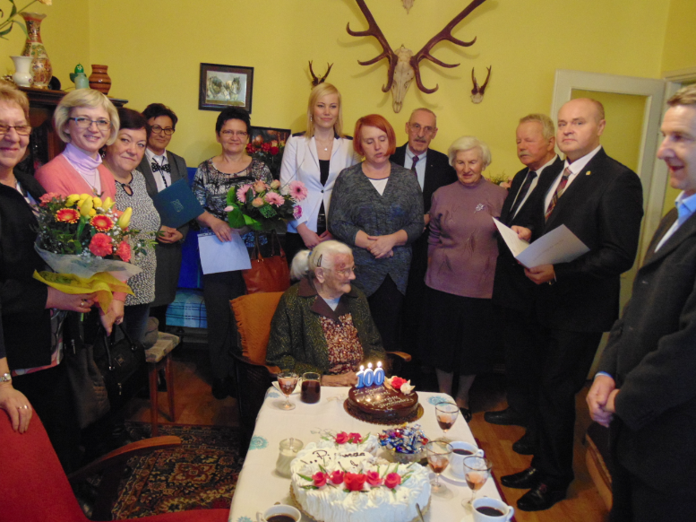 Przed południem wizytę w domu dostojnej jubilatki złożył burmistrz Piotr Ćwikła, który przekazał list z gratulacjami od premier Beaty Szydło oraz przekazał serdeczne życzenia w imieniu własnym, władz i mieszkańców Łobza, a wszystko zostało zakończone śpiewem „Dwieście lat”.