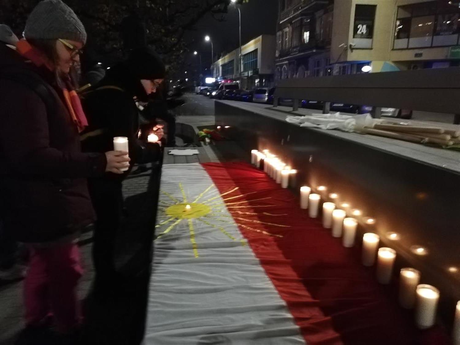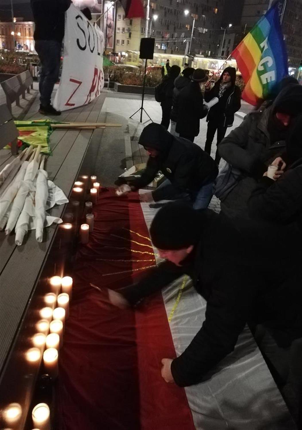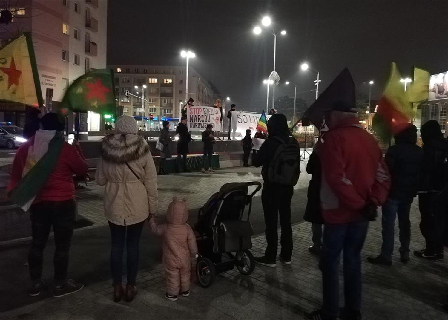 Zgromadzenie zostało zorganizowane przez Lewicę Razem oraz szczecińską diasporę kurdyjską. Uczestniczyło w nim około 50 osób. Zapalili znicze na znak pamięci o ofiarach zbrodni wojennych, dokonywanych przez najemników Erdogana. Domagali się podjęcia kroków dyplomatycznych oraz nałożenia sankcji gospodarczych przez rządy państw świata, a także zaprzestania eksportu broni do Turcji. Apelowali również o pomoc humanitarną dla dotkniętych konfliktem mieszkańców Syrii. Do czasu spełnienia tych żądań, zachęcali do bojkotu tureckich produktów i usług.