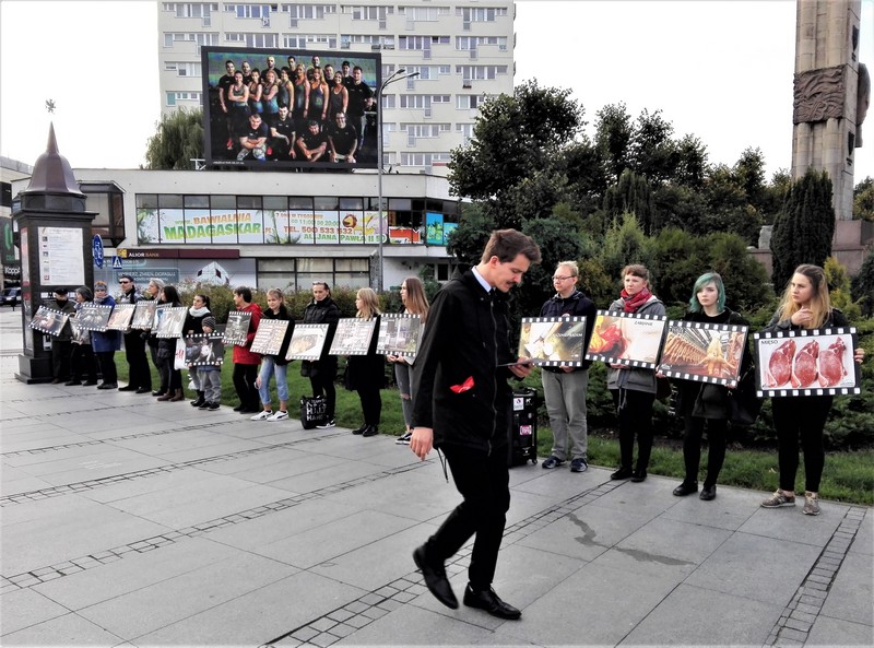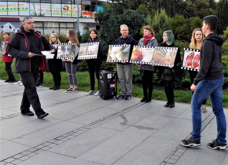 - Celem naszej akcji jest edukacja. Chcemy uświadamiać ludziom fakty, przedstawiające realia i skutki przemysłowej hodowli zwierząt, która jest okupiona ich cierpieniem, a także ma ogromny negatywny wpływ nie tylko na środowisko, ale również na ludzkie zdrowie - komentował Łukasz Musiał z Fundacji Viva!