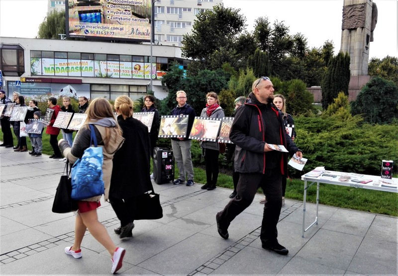 To wstrząsająca wystawa: w 18 kadrach - klatka po klatce - przedstawiająca realia przemysłowej hodowli trzody: od sztucznego zapłodnienia, przez zabiegi wykonywane bez znieczulenia, po rzeźnicze haki. Objazdowa, bo dociera do różnych ośrodków w kraju: już gościła w Gdańsku, Słupsku, Łodzi i Warszawie, a za tydzień pojedzie do Katowic. Żywa, bo każdą z jej fotograficznych klatek trzyma przynajmniej jeden reprezentant organizacji działającej na rzecz praw zwierząt. W Szczecinie byli nimi nie tylko aktywiści Fundacji Viva! oraz Stowarzyszenia Basta!, ale również przechodnie.