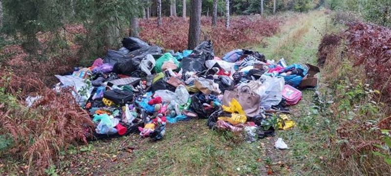 Do lasu trafia wszystko, począwszy od śmieci z gospodarstw domowych (butelki, puszki, zużyte pampersy, kocie żwirki, resztki jedzenia, zbite naczynia), przez sprzęt RTV i AGD, meble i złom, aż po materiały budowlane i rozbiórkowe. Wywożone są tam przeterminowane leki, zbite żarówki, zużyte baterie i akumulatory, azbest.
