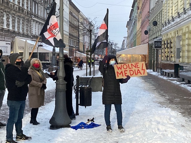 Strajk Kobiet Szczecin wspiera protest niezależnych mediów przeciwko planom wprowadzenia przez rząd nowego podatku od reklam w radiu, telewizji i internecie. Spontaniczne zgromadzenie odbyło się w środę (10 lutego) na deptaku Bogusława.