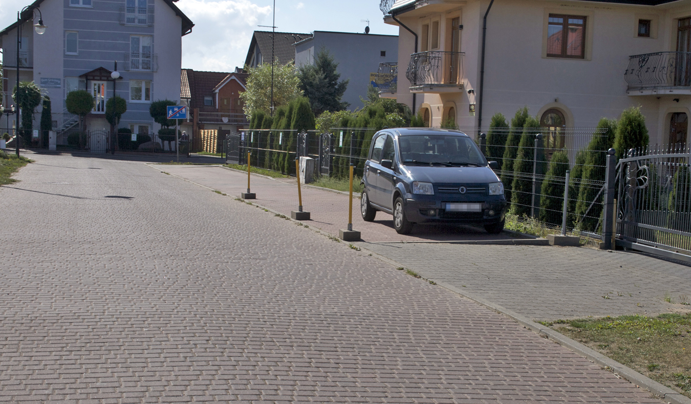 We wspomnianym miejscu nie ma strefy parkowania, nie ma oznaczonego parkingu i wyznaczonych miejsc parkingowych. Jak widać, samochód należący do komendanta Bławata parkuje wzdłuż płotu (nie prostopadle) i ogrodzony jest ustawionymi przez niego palikami zamontowanymi w betonowej podstawie. Parking przed jego pensjonatem jest pasem drogi technicznej gminy, ale czy ma zgodę na parkowanie tam swojego samochodu, czy też aut swoich wczasowiczów? Zapytaliśmy o to, dzwoniąc na służbowy numer straży gminnej.