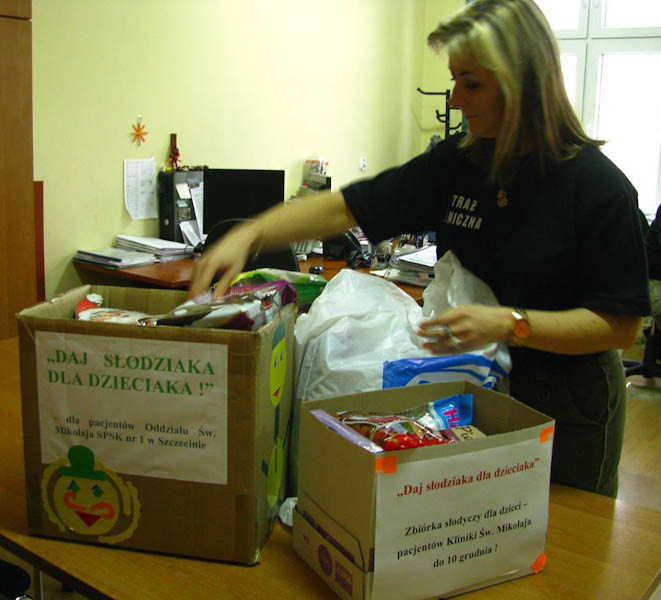 Pacjenci z Oddziału Świętego Mikołaja już od kilku lat wspierani są przez funkcjonariuszy i pracowników Straży Granicznej ze Szczecina, którzy przekazują do szpitala słodycze i zabawki, a także donacje krwi niezbędnej dla leczenia niektórych chorób.