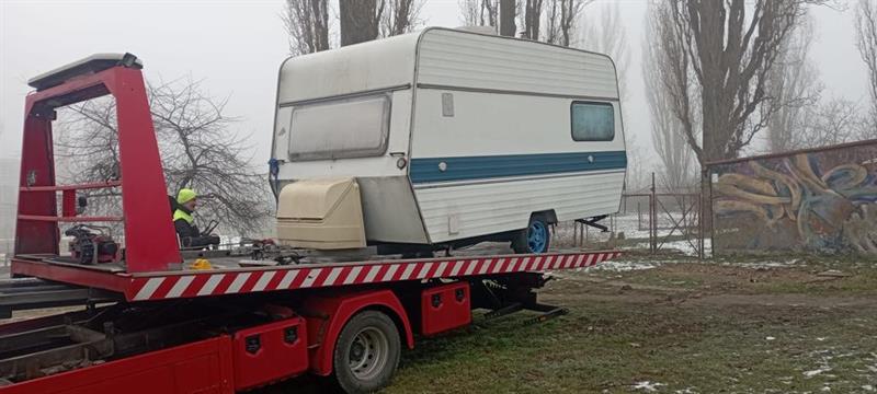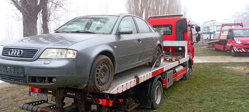 Na zdjęciach udostępnionych przez Straż Miejską widać oba pojazdy, tj. samochód marki Audi oraz przyczepę campingową. Już na platformach, które odholowały je na miejski parking. ©℗