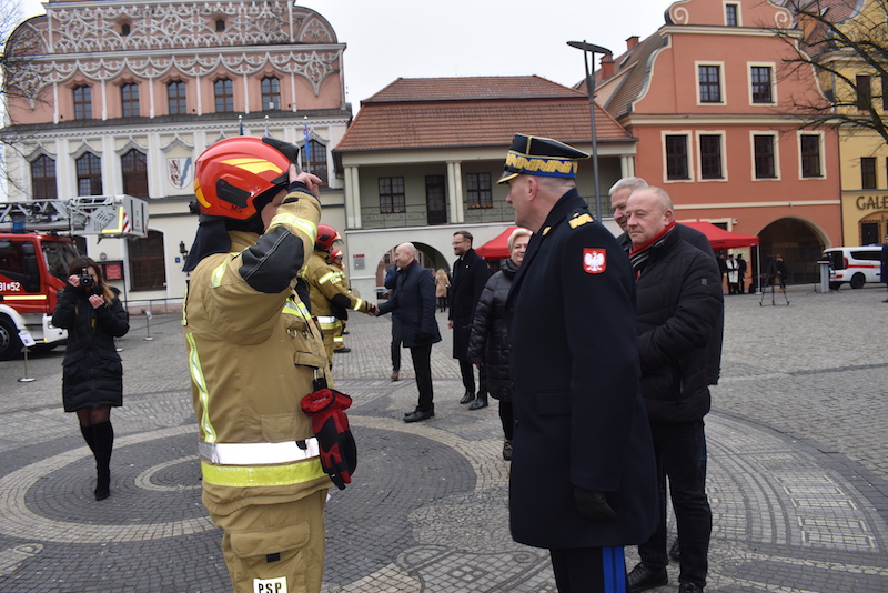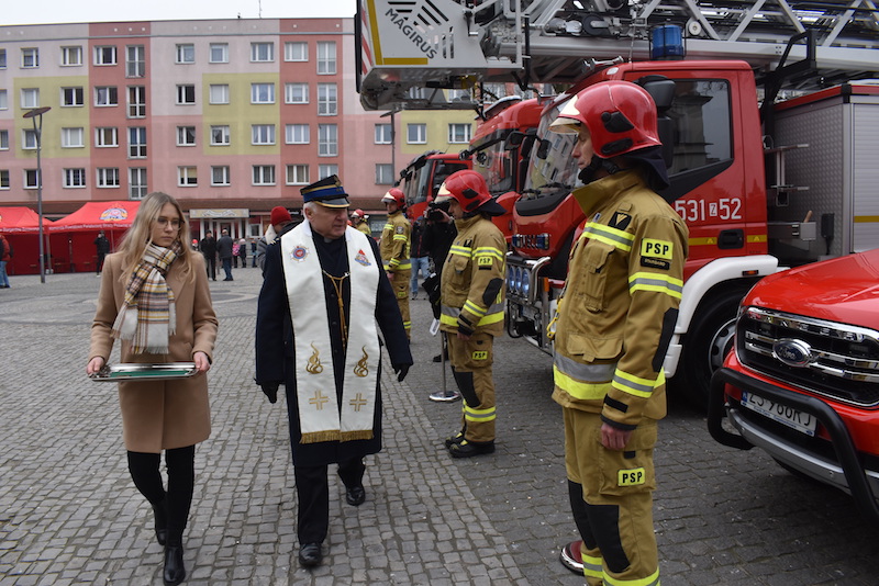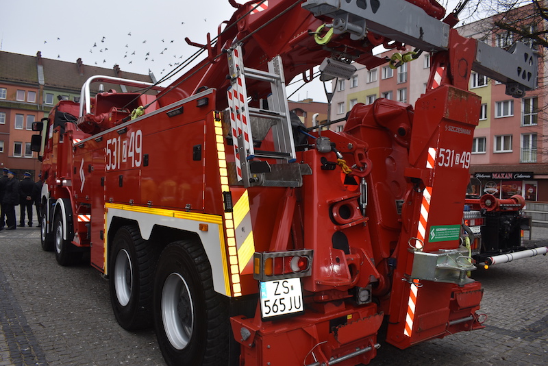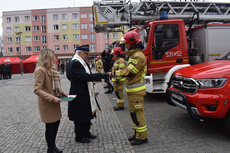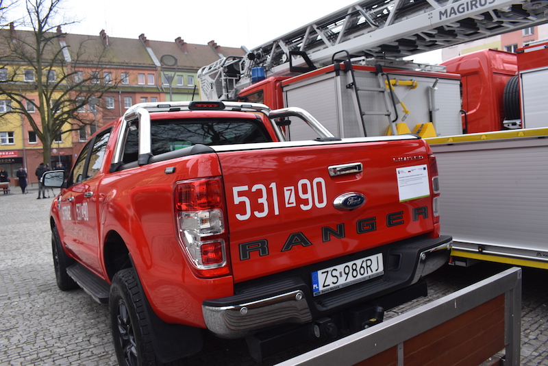 Na Rynku Staromiejskim w Stargardzie w piątek (3 marca) uroczyście oddano strażakom do użytku nowe, specjalistyczne pojazdy.