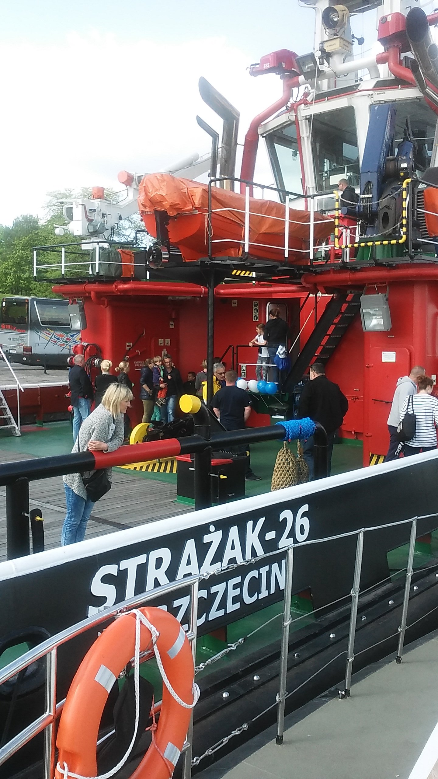 Można było wsiąść do kabiny lub wejść na dach nowoczesnych wozów strażackich zaparkowanych na nabrzeżu. Największa atrakcją był jednak statek "Strażak-26", który na wyposażeniu Portowej Służby Ratowniczej jest dopiero od początku tego roku. To bardzo nowoczesna jednostka, która potrafi poradzić sobie z gaszeniem pożarów zarówno na wodzie jak i na nabrzeżu. Zarząd Morskich Portów Szczecin i Świnoujście na zakup tego sprzętu uzyskał dofinansowanie z funduszy europejskich.