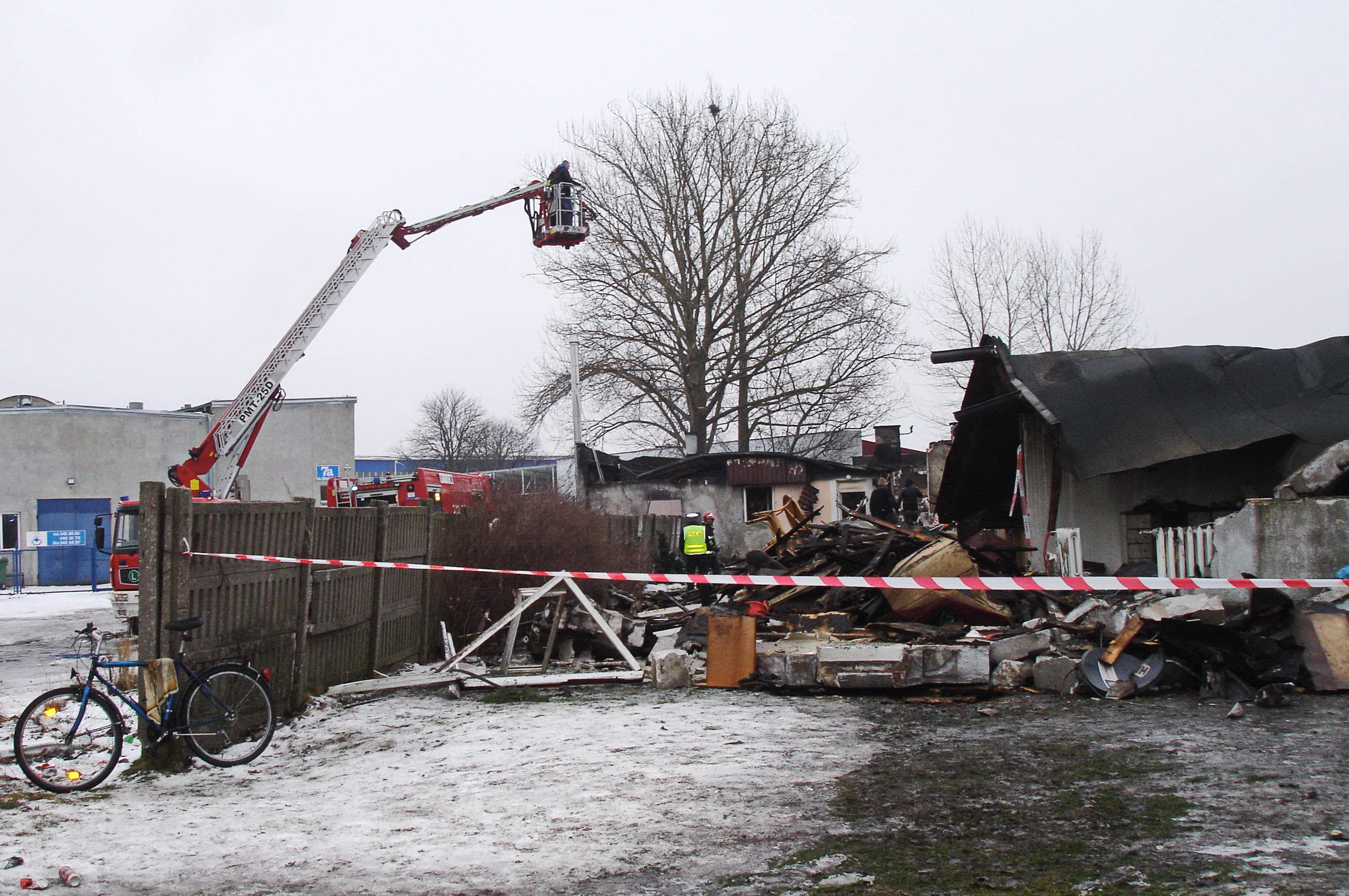 Na zdj.: Widok jak z krajobrazu po wojnie. Pogorzelisko po budynku socjalnym przy ulicy Słowiańskiej 7.