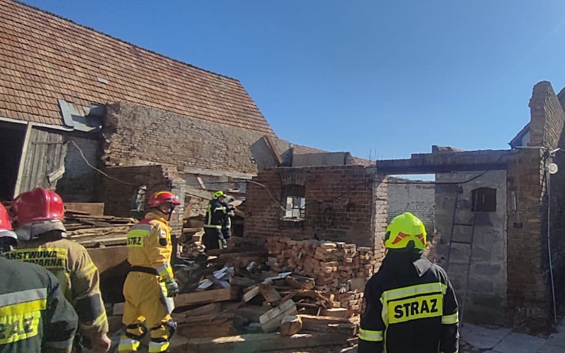 - Do zdarzenia została zadysponowana Specjalistyczna Grupa Poszukiwawczo-Ratownicza "Stargard" oraz OSP Suchań - informuje Paweł Różański, rzecznik Powiatowej Straży Pożarnej w Stargardzie. Po przyjeździe na miejsce zdarzenia stwierdzono, że w częściowo uszkodzonym budynku gospodarczym doszło do zawalenia się ściany z cegły na przebywającą wewnątrz kobietę. Osoba poszkodowana była przysypana gruzem od pasa w dół.