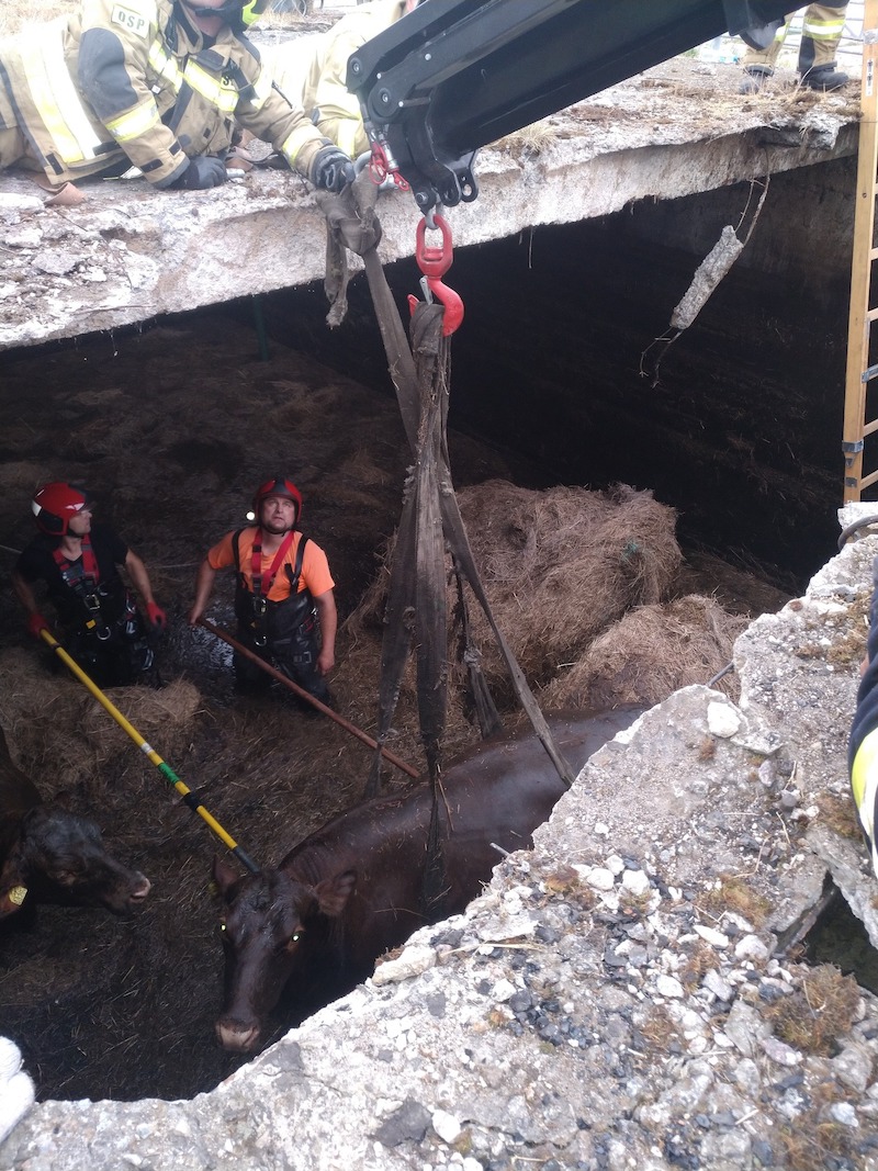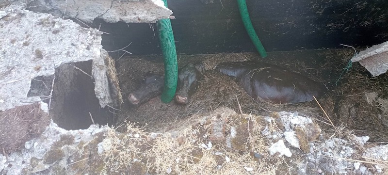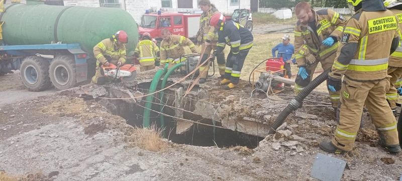 Jak informuje Rafał Matysik, rzecznik Komendy Powiatowej Państwowej Straży Pożarnej w Stargardzie, krowy wyszły za ogrodzenie, gdzie znajdowało się zakryte płytami szambo. Płyty zarwały się i zwierzaki wpadły do gnojowicy.