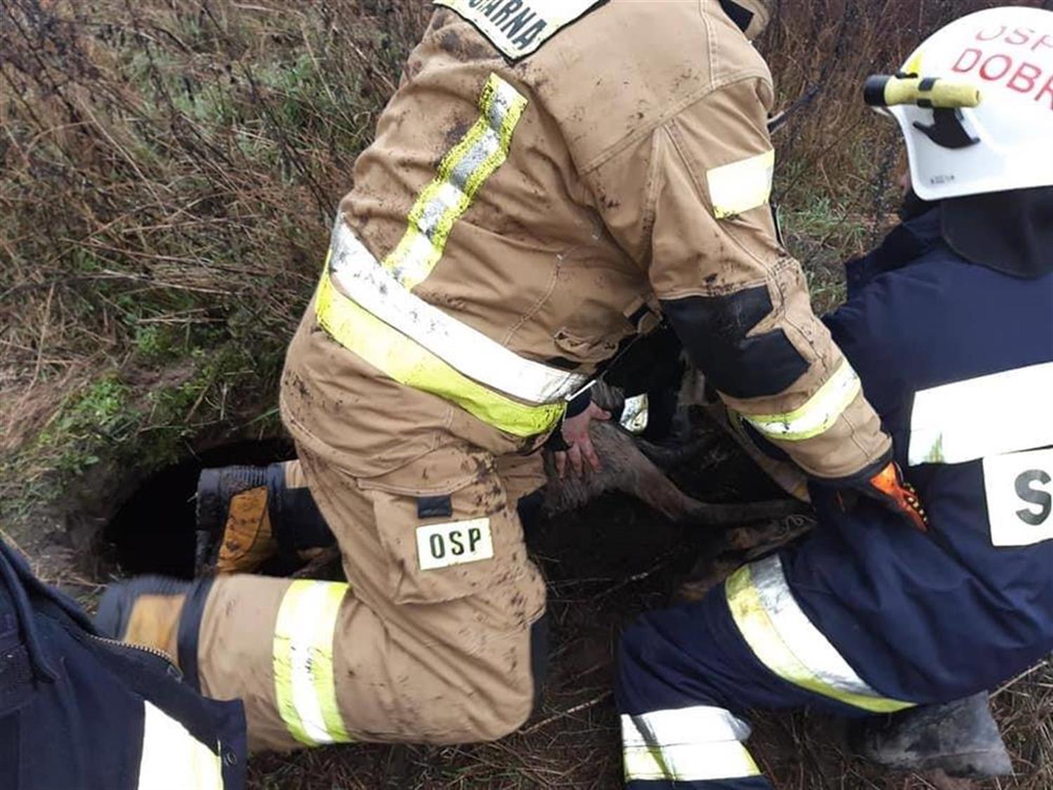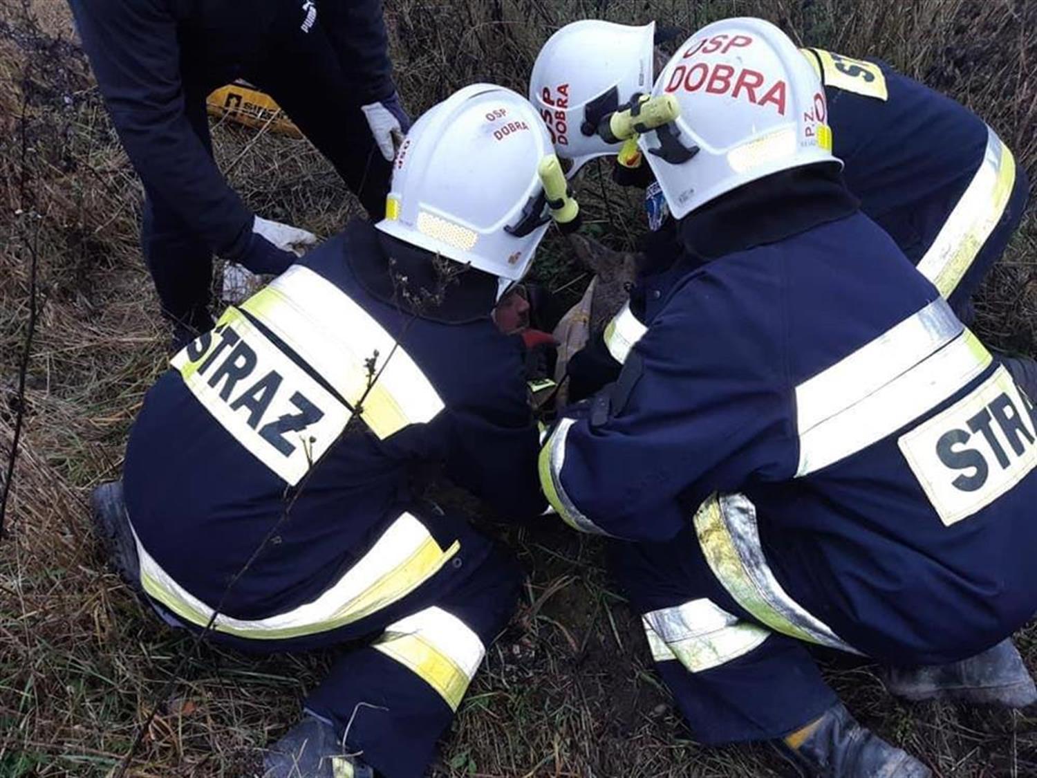 Strażacy z Ochotniczej Straży Pożarnej w Dobrej uratowali sarnę. Zwierzę wpadło do niezabezpieczonej studzienki kanalizacyjnej i nie mogło się wydostać.