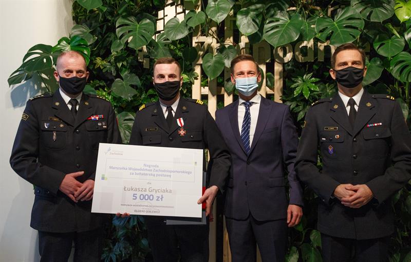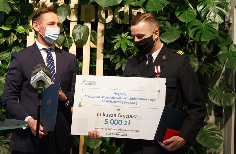 W styczniu strażak Łukasz Gryciak uratował z pożaru dwoje małych dzieci i ich babcię, narażając własne życie. W środę marszałek województwa zachodniopomorskiego Olgierd Geblewicz podziękował mu i wręczył ustanowioną przez siebie nagrodę.