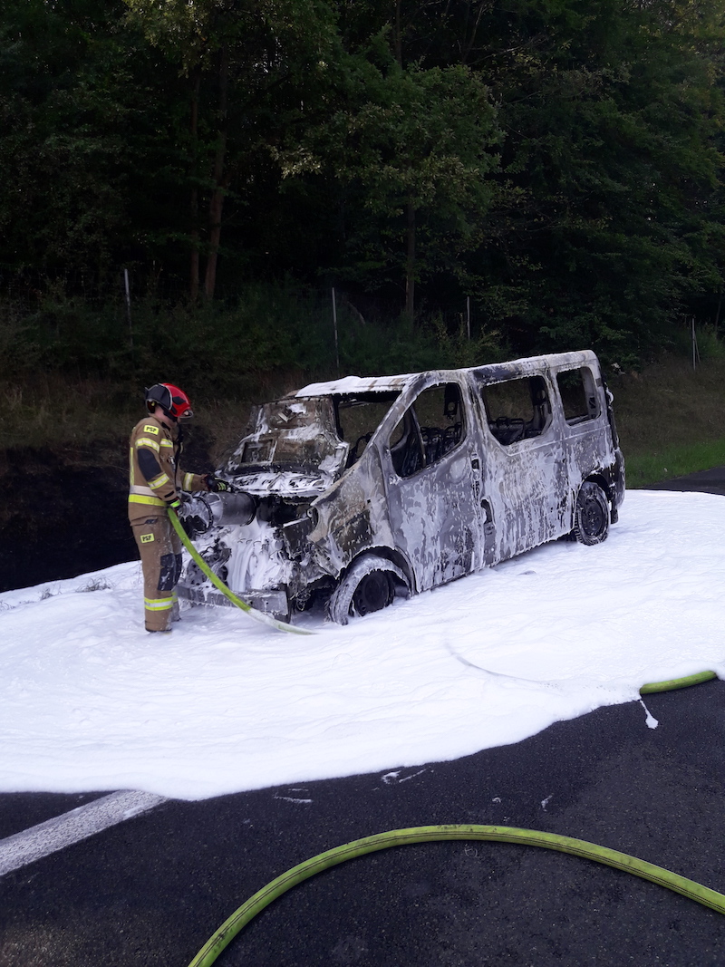 Pojazd płonął coraz bardziej, strażnicy podjęli decyzję o ograniczeniu ruchu na drodze w kierunku Berlina - skierowali go na pas awaryjny. Po kilkunastu minutach na miejsce dojechała straż pożarna i ugasiła ogień, który zdążył już przenieść się na trawę w kierunku lasu. Za zgodą dowódcy PSP odblokowano ruch na nitce w kierunku Berlina, natomiast w kierunku Świnoujścia odbywał się on tylko lewym pasem do momentu całkowitego zneutralizowania pożaru i posprzątania jego skutków.