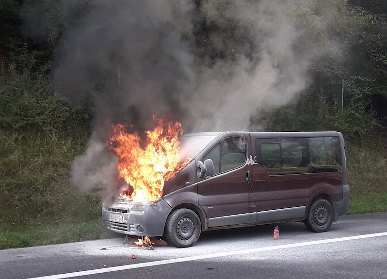 Strażnicy zatrzymali się na poboczu, włączając sygnały świetlne. Jeden z funkcjonariuszy pytał świadków o to, czy nie ma ofiar i gdzie jest kierujący pojazdem. Okazało się, że kierowca znajdował się w pobliżu, ale nie był w stanie poradzić sobie z ogniem.