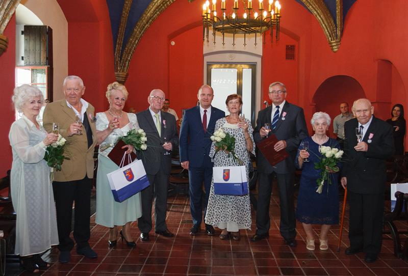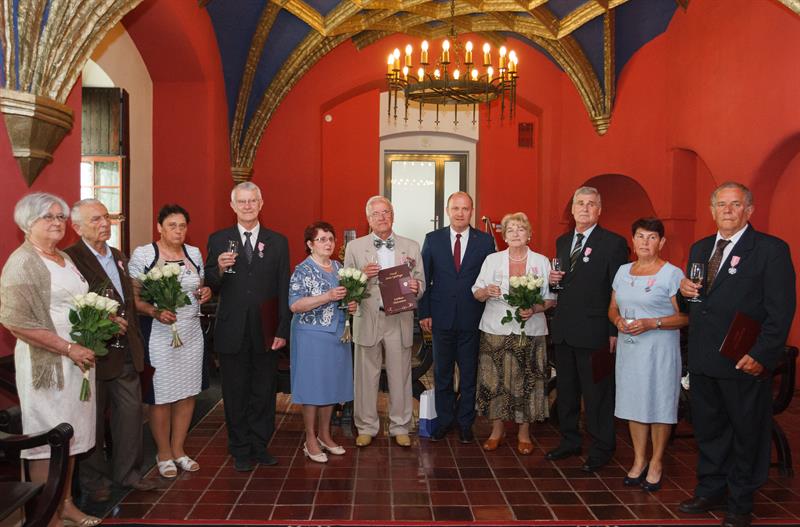 Kolejni szczecinianie obchodzący złote gody zostali zaproszeni w poniedziałek na uroczystość wręczenia Medali za Długoletnie Pożycie Małżeńskie. Ceremonia odbyła się w Sali Ślubów w Zamku Książąt Pomorskich. Odznaczenia, nadane przez prezydenta RP Andrzeja Dudę, przekazał jubilatom prezydent miasta Piotr Krzystek. Złożył im także serdeczne życzenia, wręczył listy gratulacyjne i upominki. Wzruszonym parom podczas uroczystości towarzyszyli bliscy. "Kurier Szczeciński" dołącza się do życzeń. W następnych wydaniach naszej gazety będziemy prezentowali zdjęcia odznaczonych par.