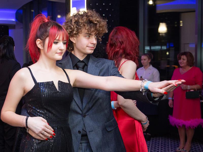 Ich przedmaturalny bal odbył się w czwartek 9 lutego w przestrzeniach Hanza Tower. Nie tylko oni bawili się na nim doskonale, także nauczyciele nie schodzili z parkietu. A Królową Balu - jak zdradzają nam uczniowie - została nauczycielka matematyki. I choć swoją koronę oddała uczennicy, która zajęła w tym konkursie drugie miejsce, to musi być znak, że matma na maturze pójdzie wszystkim znakomicie. Będziemy trzymać kciuki!