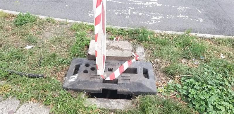 Kilka dni temu pisaliśmy o niebezpiecznej, bo niczym niezabezpieczonej studzience telekomunikacyjnej, znajdującej się na wysokości przystanku tramwajowego linii 6 „Wyszyńskiego” w Szczecinie. Ze względu na bliskość przejścia dla pieszych i ścieżki rowerowej, stanowiła realne zagrożenie.