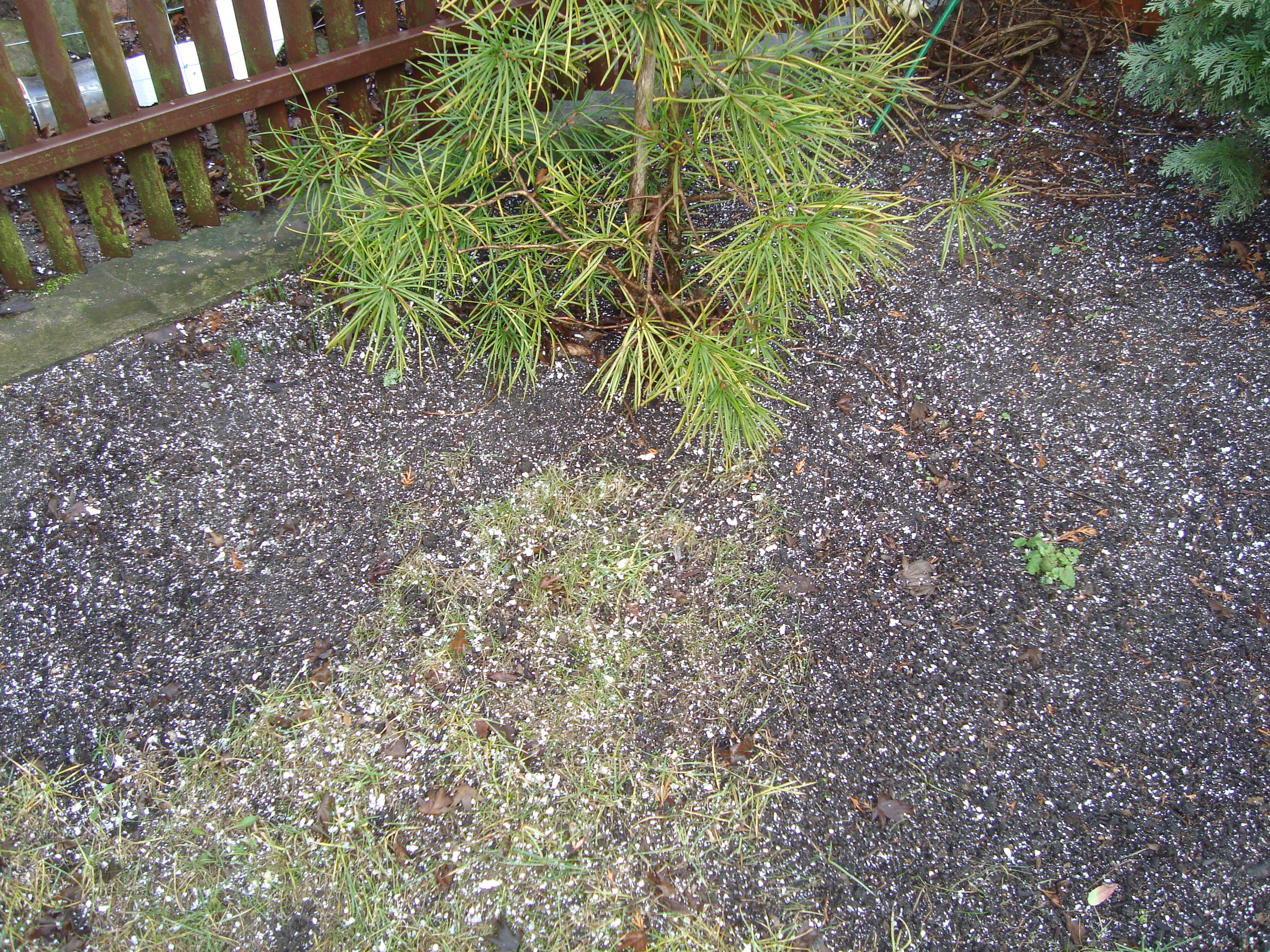 Na zdj.: Działka pokryta styropianowymi kulkami