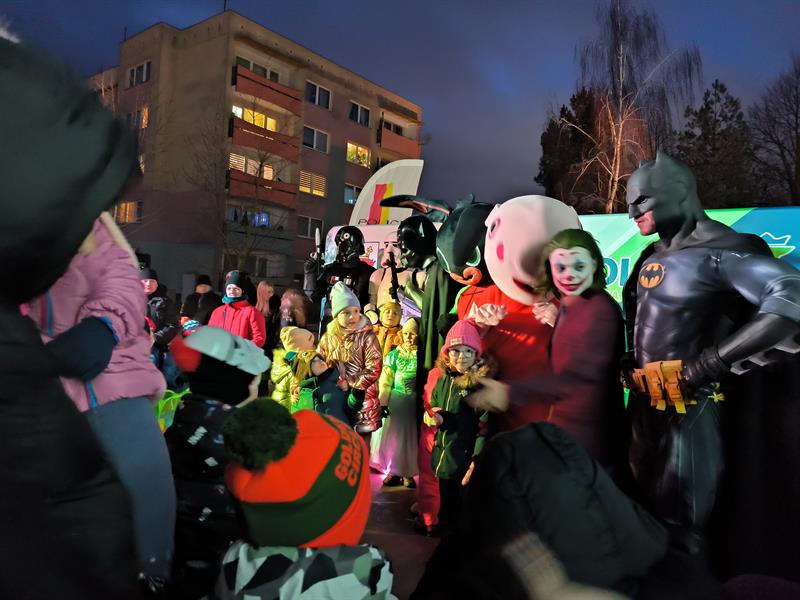 A punktem kulminacyjnym była wizyta superbohaterów z Ligi Superbohaterów. Można więc było zrobić sobie zdjęcie m.in. z Batmanem, świnką Peppą, lordem Vaderem, szturmowcem, pilotem myśliwca TIE. Ale też z księżniczką, czarodziejem, jaskiniowcem... - bo przebrani byli też organizatorzy i niektórzy z uczestników tej karnawałowej imprezy.
