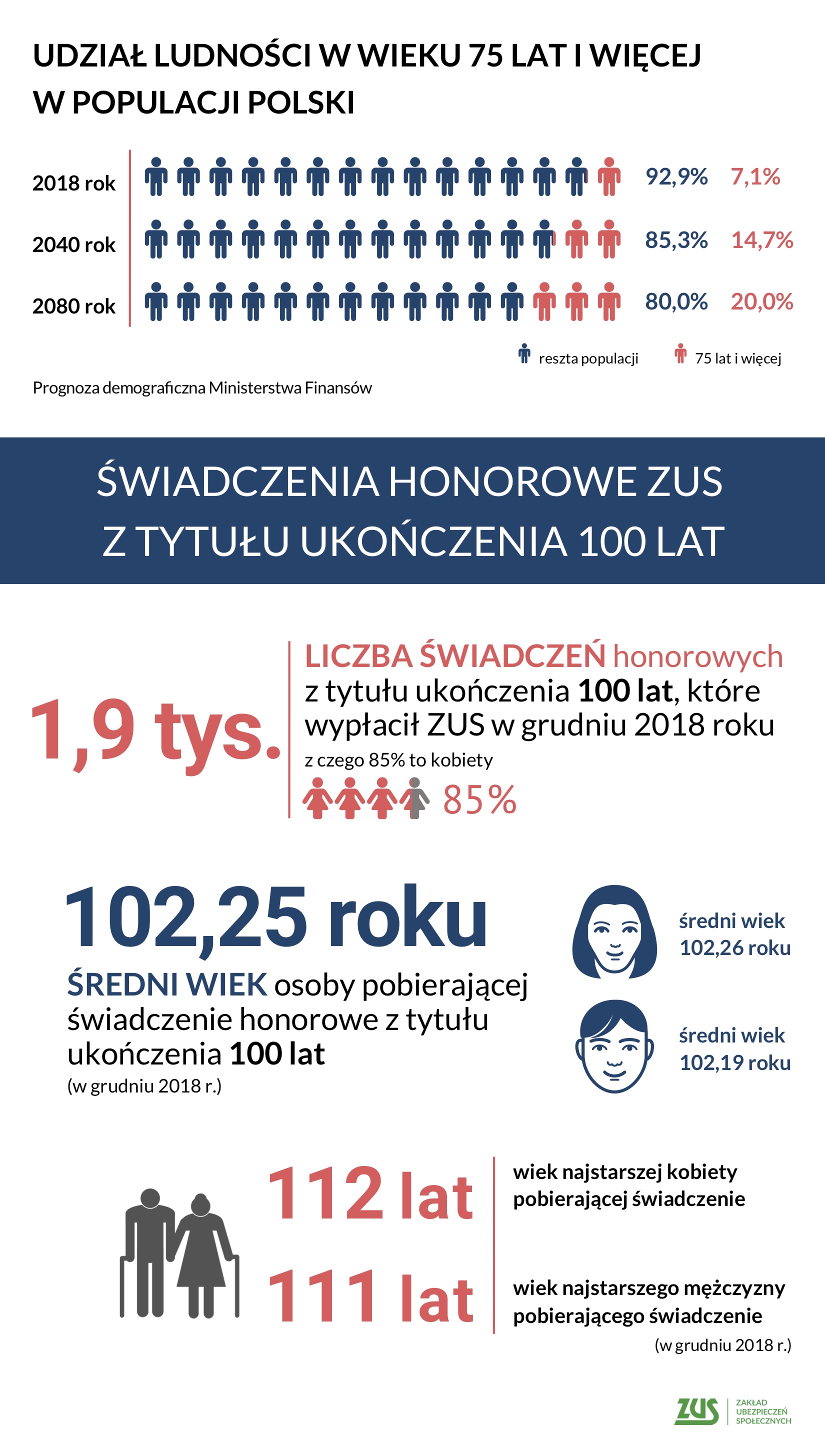 Osobom, które pobierają emeryturę lub rentę z ZUS, świadczenie honorowe przyznawane jest z urzędu, przez prezesa ZUS, z chwilą ukończenia stu lat. Nie muszą składać w tej sprawie żadnego wniosku.