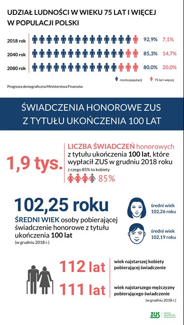 - Zdecydowanie przeważają kobiety - mówi Karol Jagielski, regionalny rzecznik prasowy ZUS. - Jest ich 75: w Szczecinie 50, w Koszalinie 25. Najstarszy 100-latek z tych świadczeniobiorców to kobieta, która ma 108 lat i mieszka w Szczecinie. W kraju również najstarsza jest pani i ma 112 lat. W naszym województwie średni wiek kobiet pobierających świadczenie honorowe to 102 lata, natomiast u mężczyzn jest on o pół roku wyższy.