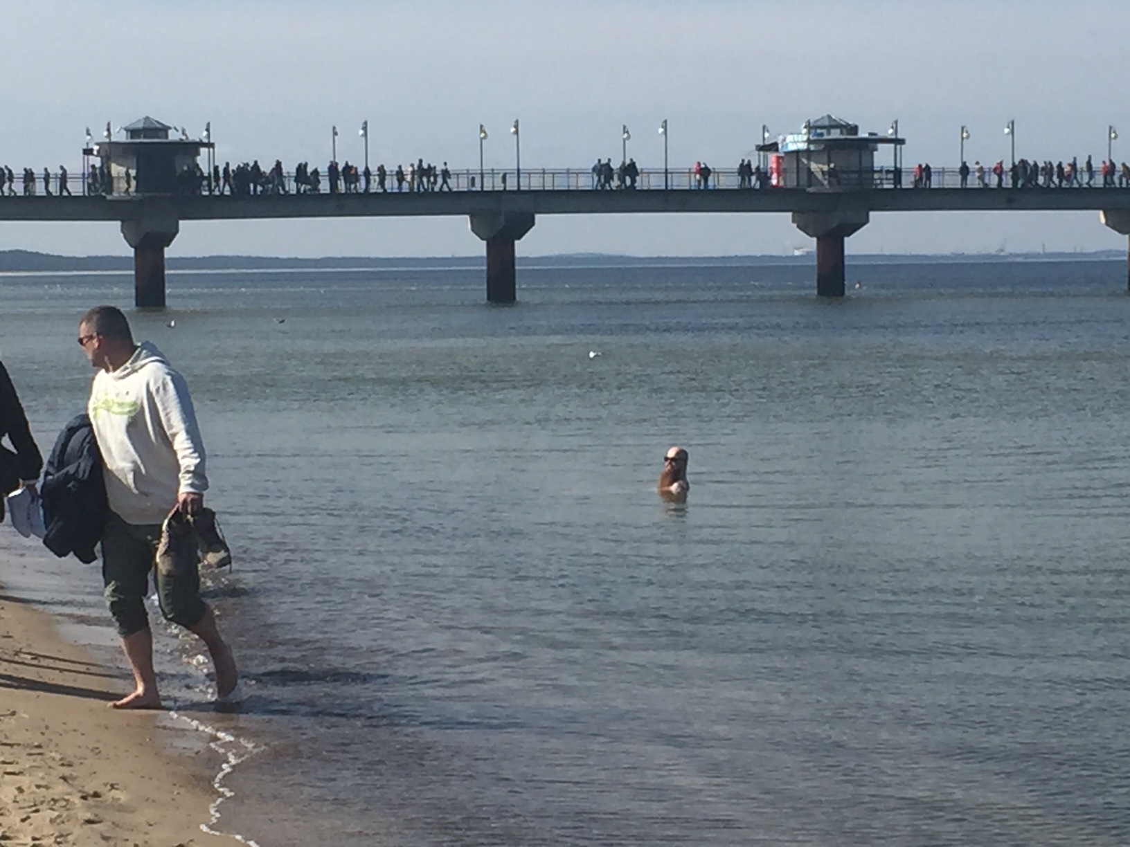 Wprawdzie to jeszcze marzec, ale słoneczna pogoda już przypomniała niektórym o letnich kąpielach. Tego amatora morskiej wody można było podziwiać w świąteczny poniedziałek na plaży w Międzyzdrojach. Taka kąpiel wymaga sporego hartu ciała i ducha, gdyż temperatura wody wynosiła tylko ok. 6 st. C. Jak widać wczesnowiosenne moczenie się w Bałtyku nie zdobyło zbyt wielu naśladowców. (k)
