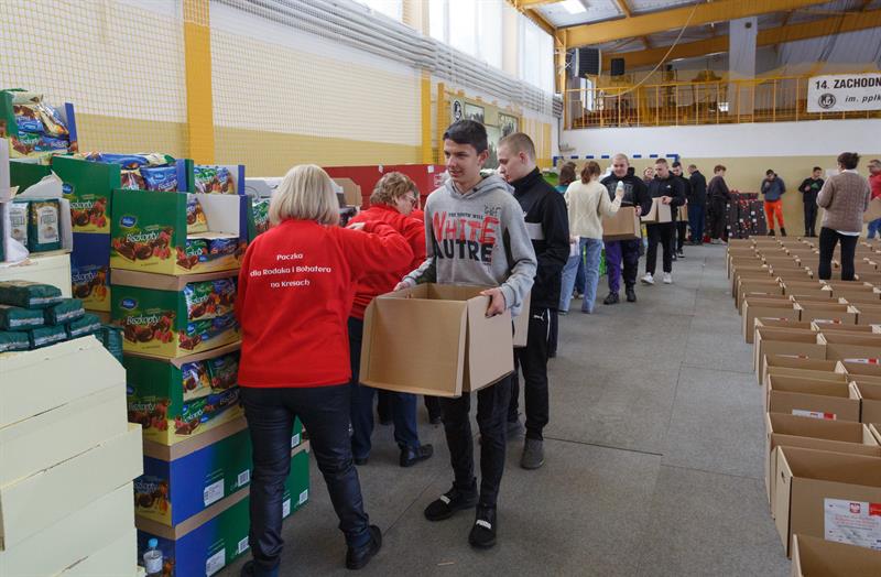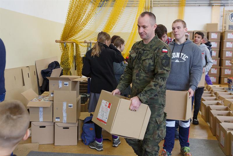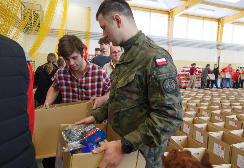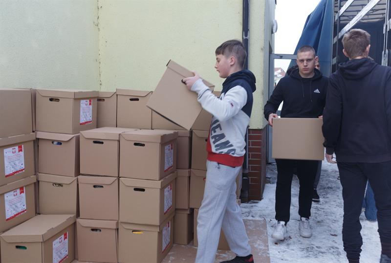 W piątek wolontariusze segregowali produkty, a w sobotę pakowali je w sali gimnastycznej 14. Zachodniopomorskiej Brygady Obrony Terytorialnej w szczecińskich Podjuchach. Z darami dla najbardziej potrzebujących pojechało 10 osób.