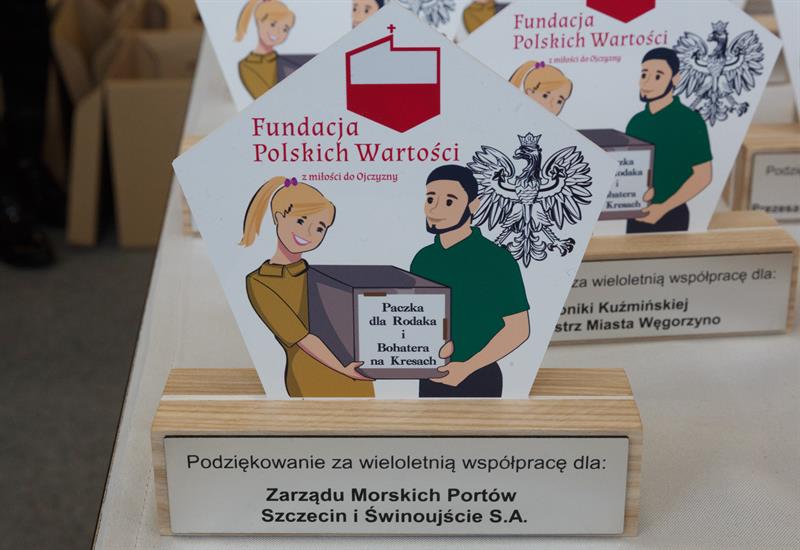 Tuż przed rozpoczęciem pakowania odbyła się miła uroczystość. Z okazji 10-lecia akcji pamiątkowe statuetki wręczono tym, którzy od lat ją wspierają. Otrzymali je wraz z podziękowaniami za pomoc m.in.: Dariusz Śpiewak z Zarządu Morskich Portów Szczecin i Świnoujście, Mariusz Grab – prezes Grupy Azoty Zakładów Chemicznych „Police”, Monika Kuźmińska – burmistrz Węgorzyna, ks. Maciej Szmuc – dyrektor Caritas Archidiecezji Szczecińsko-Kamieńskiej, Edward Osina – prezes Calbudu (w jego imieniu statuetkę odebrał Arkadiusz Litwiński), Dariusz Smoliński – prezes Polskich Terminali, Gheorghe Marian Cristescu – prezes Fundacji „Hotele dla Medyków”, Piotr Nagórski – prezes Banku Żywności im. Jacka Kuronia w Szczecinie, Marcin Posadzy – dyrektor oddziału Totalizatora Sportowego w Szczecinie. W imieniu starosty polickiego Andrzeja Bednarka statuetkę odebrała Agnieszka Rychlik-Bakalarz. Podziękowano również posłowi Zbigniewowi Boguckiemu.
